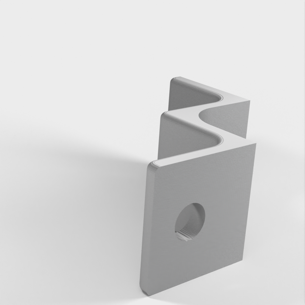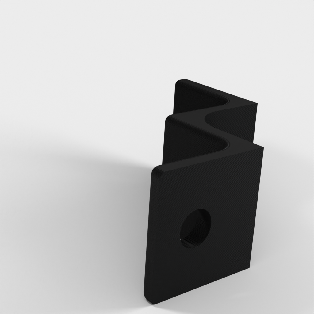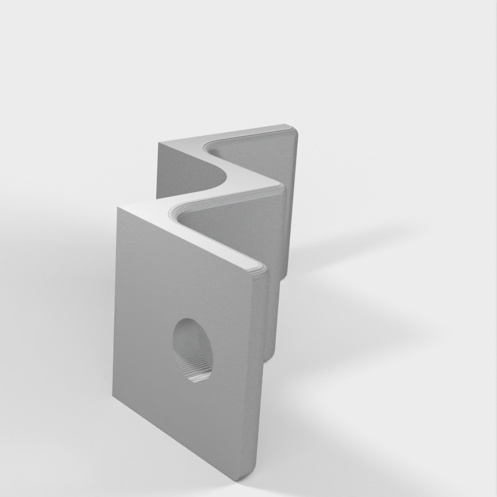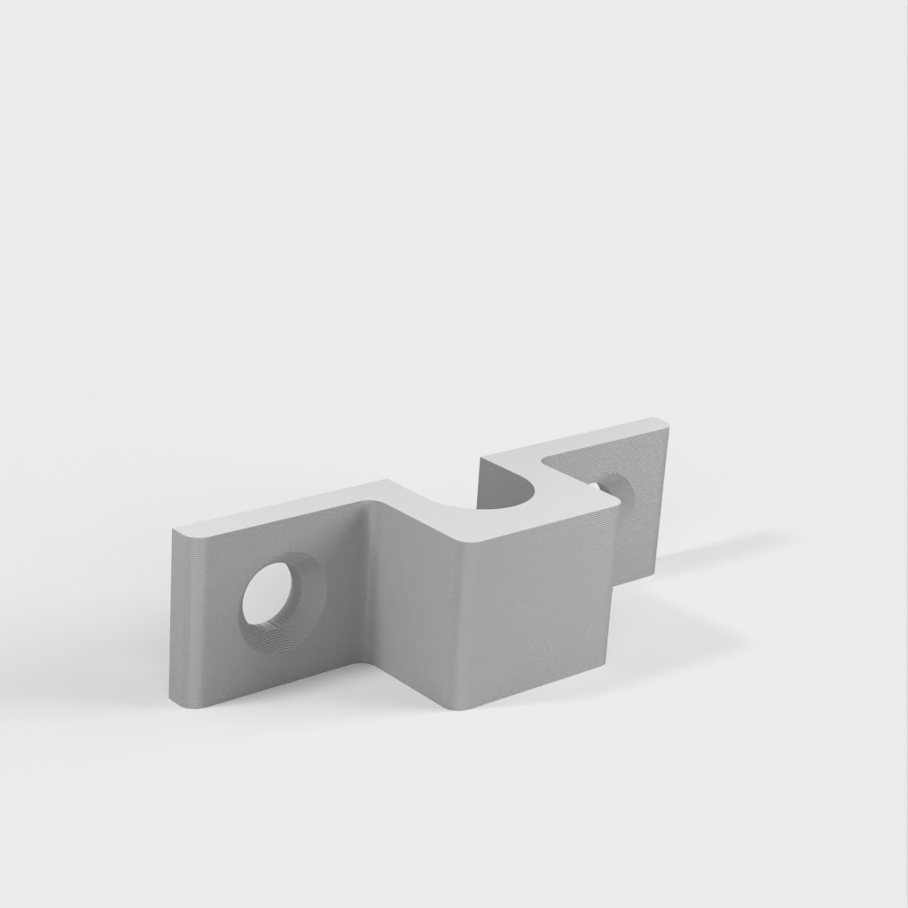 En lille kabelholder til forlængerledninger med en maksimal diameter på 7mm. Dette produkt er lavet i både flade og hjørnevarianter. Modellen vejer lige over 1g, så den er nem at håndtere. Det anbefales at printe kabelholderen i ASA, ABS eller andet holdbart materiale. Ingen særlig høj opløsning er nødvendig for udskrivning.