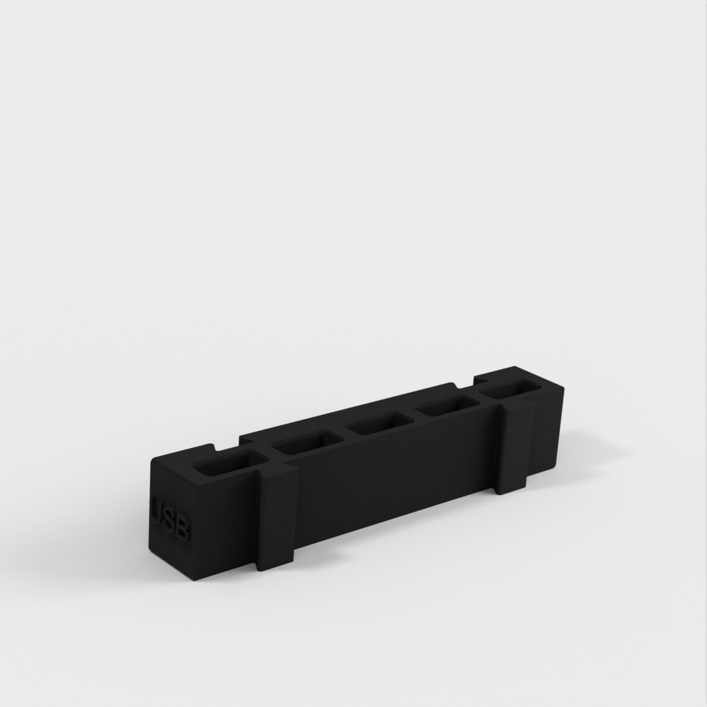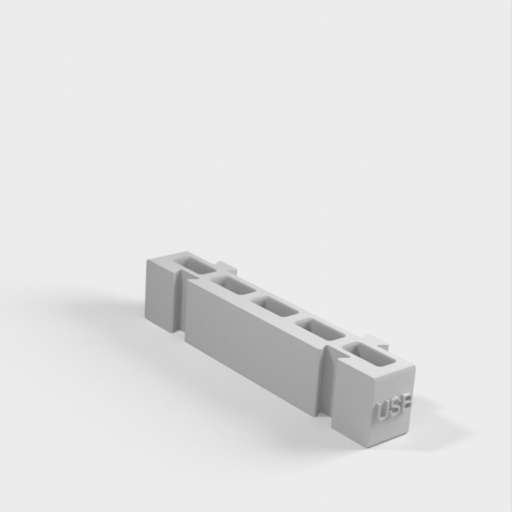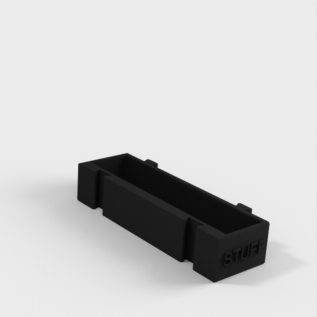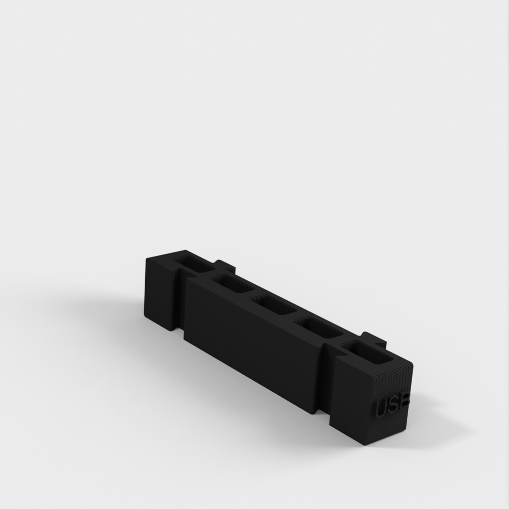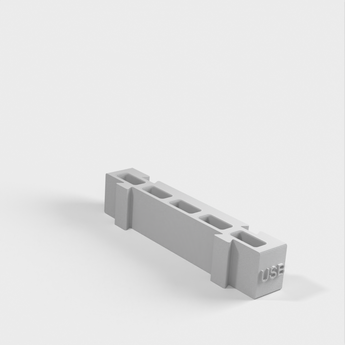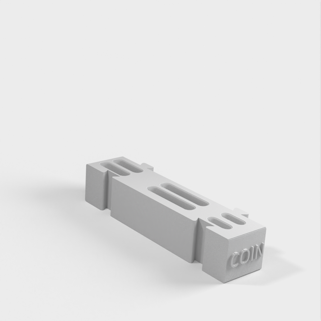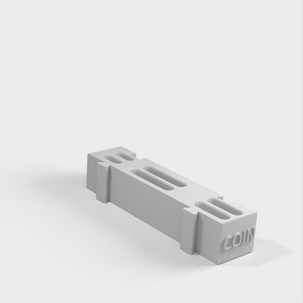 Dette er en modulær batteriholder, der tilbyder forskellige holdere for hver type batteri. Alle holdere har samme længde og kan klippes sammen i enhver kombination, du ønsker. Det er en ideel løsning til at organisere skrivebordet og holde styr på dine batterier. Tilføjelse af en AA-batteriholder og en møntholder til samlingen øger dets funktionalitet yderligere.