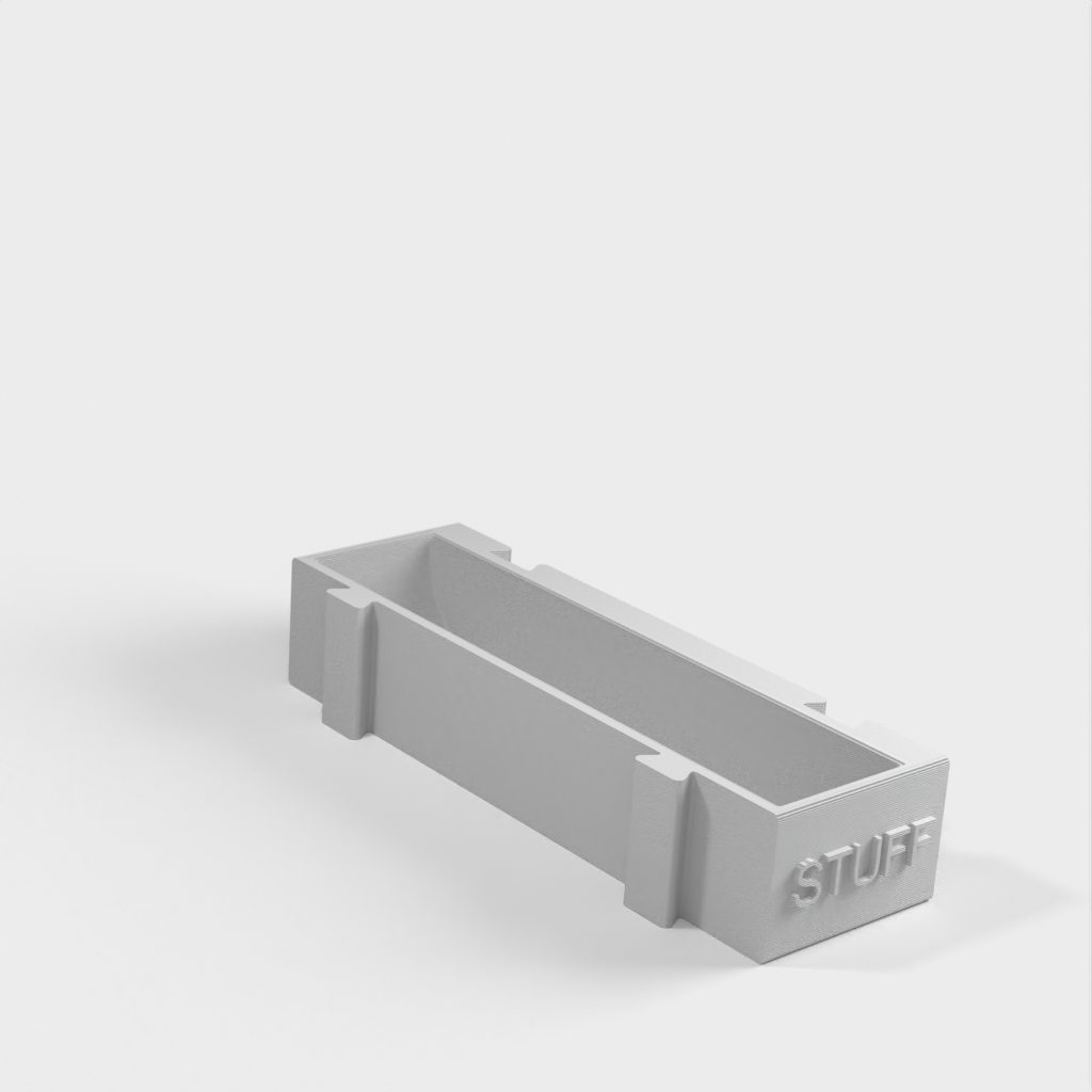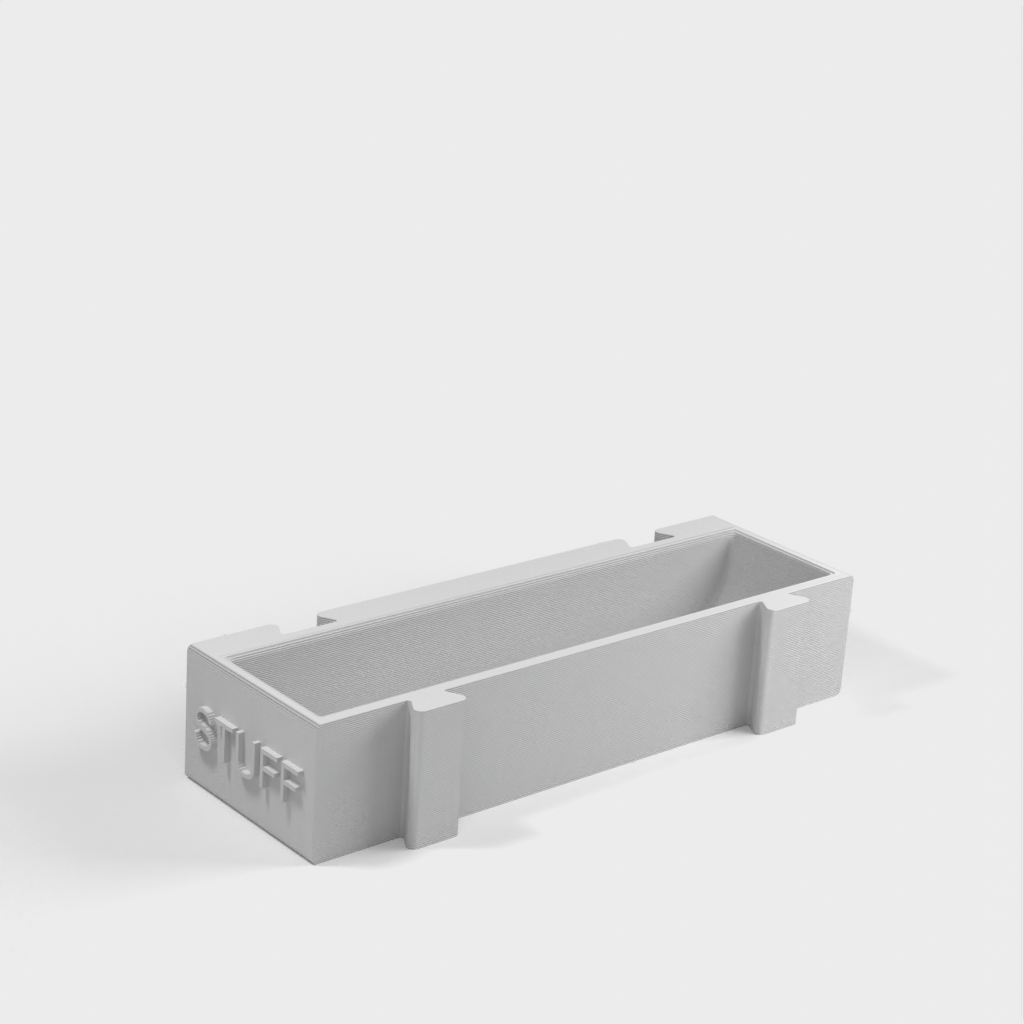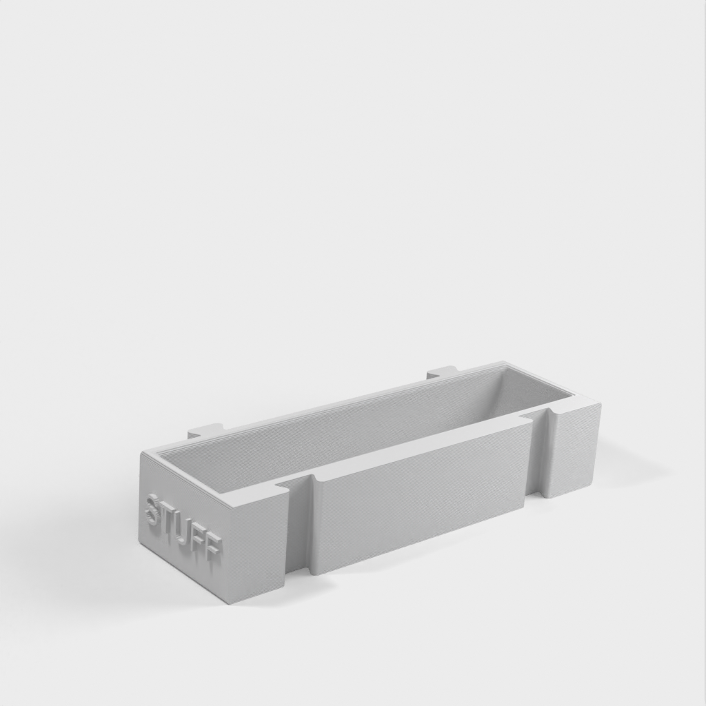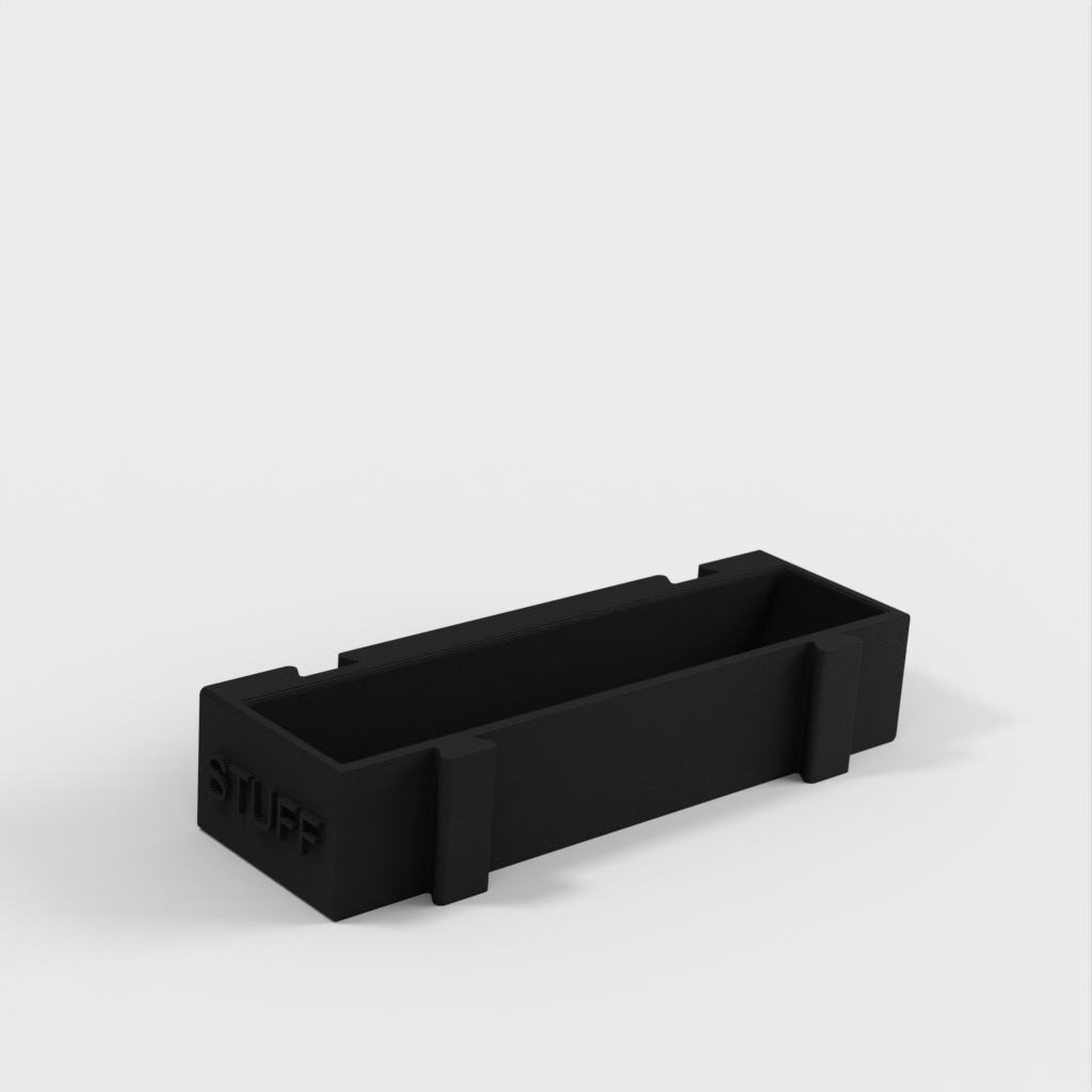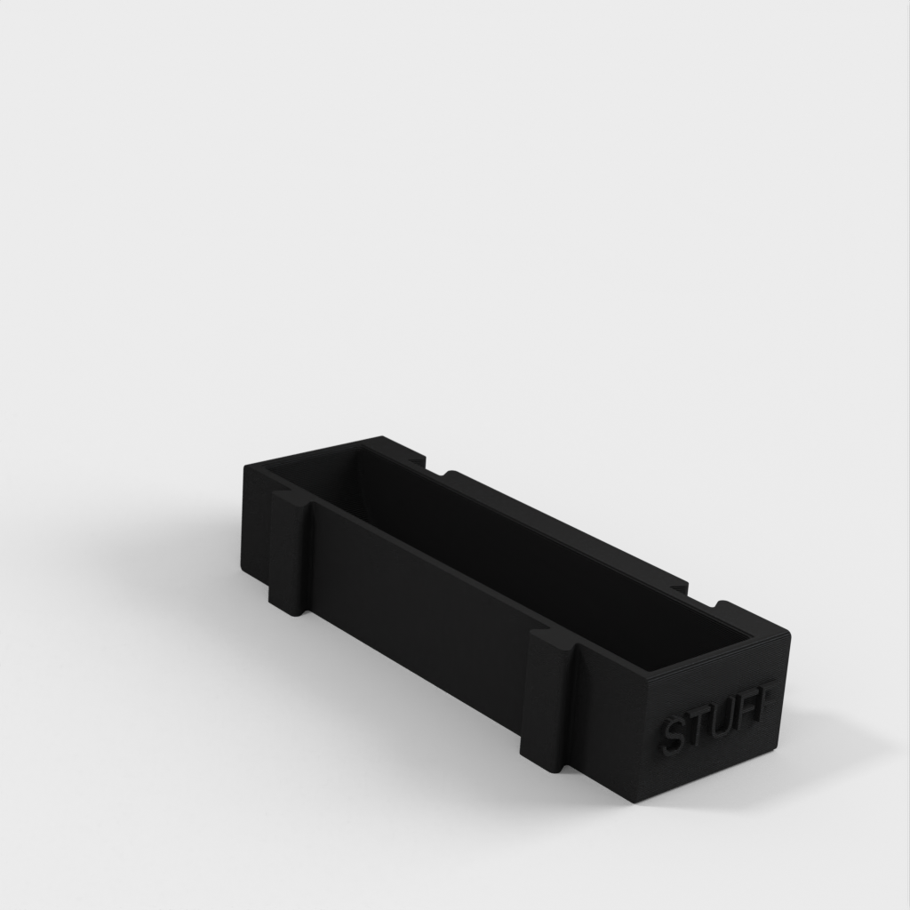 Dette er en modulær batteriholder, der tilbyder forskellige holdere for hver type batteri. Alle holdere har samme længde og kan klippes sammen i enhver kombination, du ønsker. Det er en ideel løsning til at organisere skrivebordet og holde styr på dine batterier. Tilføjelse af en AA-batteriholder og en møntholder til samlingen øger dets funktionalitet yderligere.