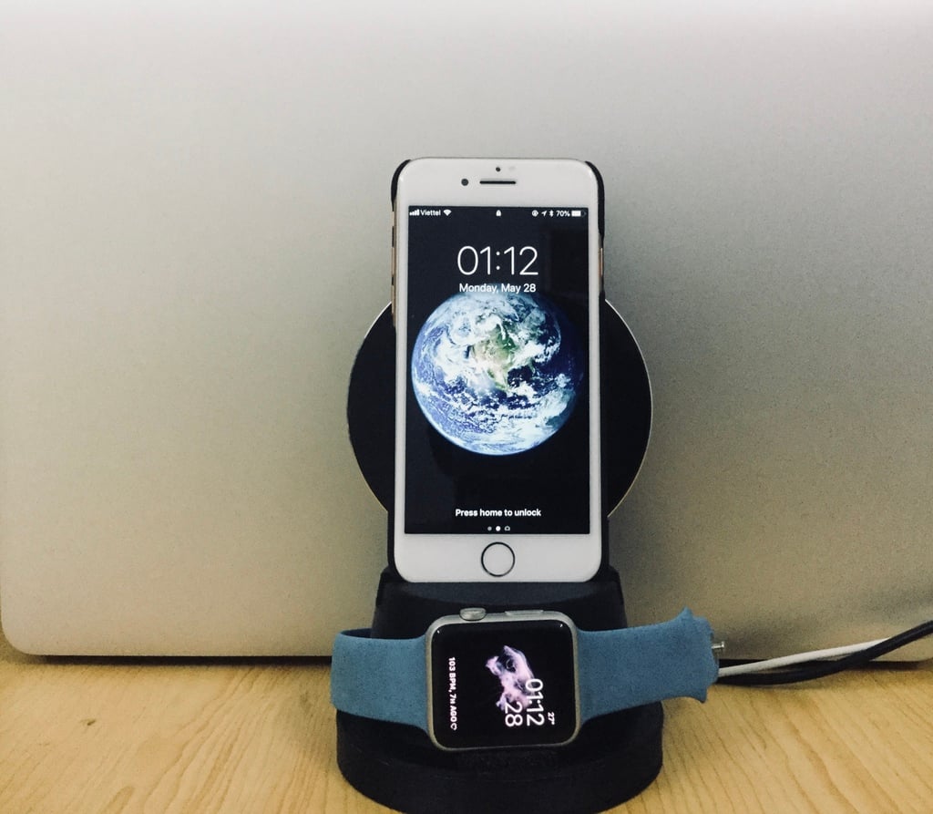 Med et integreret design, der intelligent skjuler kablerne, hjælper denne dock med at holde dit bord eller natbord ryddeligt og fri for rod. Installationen er ligetil, og for kablet opladning kan et Lightning-kabel nemt fastgøres, mens trådløs opladning kræver en trådløs oplader med en diameter på 10 cm. Nyd en strømlinet opladningsoplevelse, hvor dine Apple-enheder altid er klar til brug.