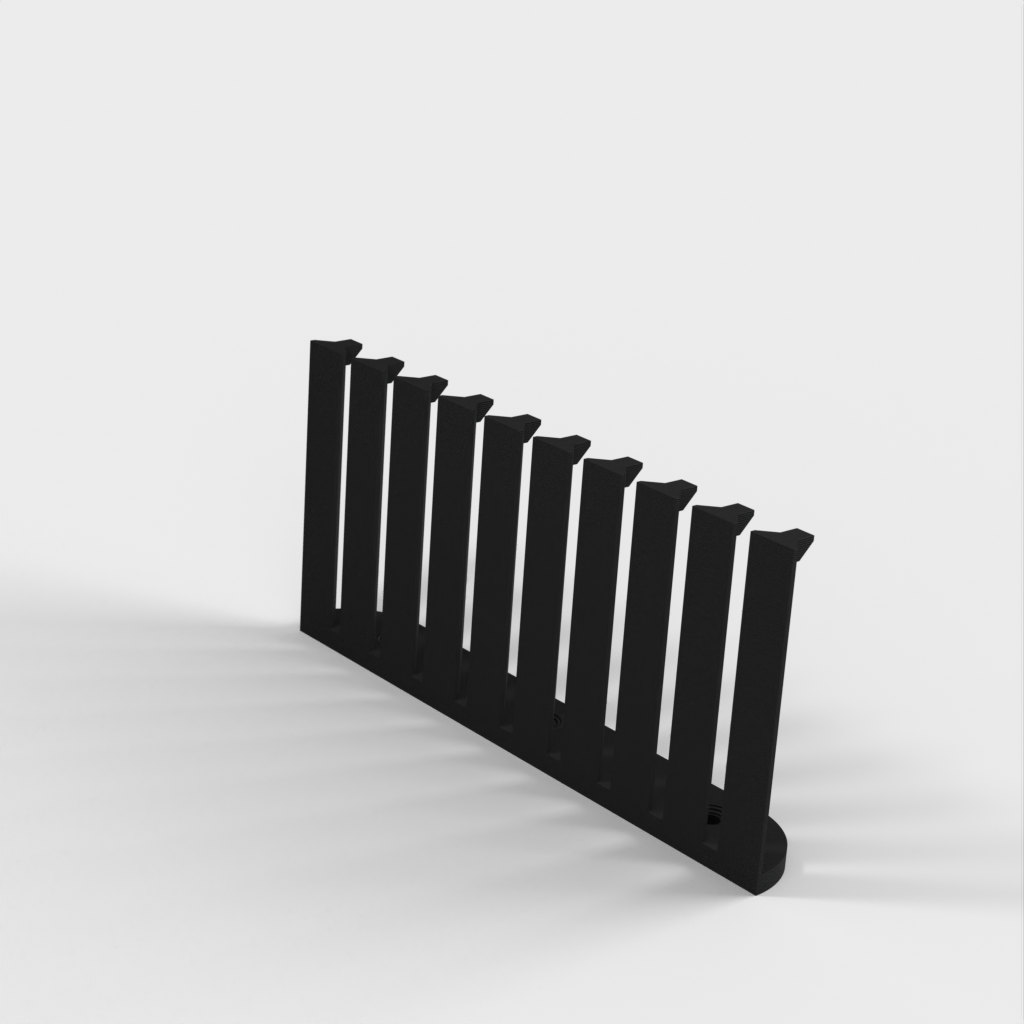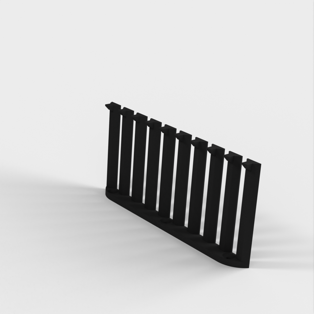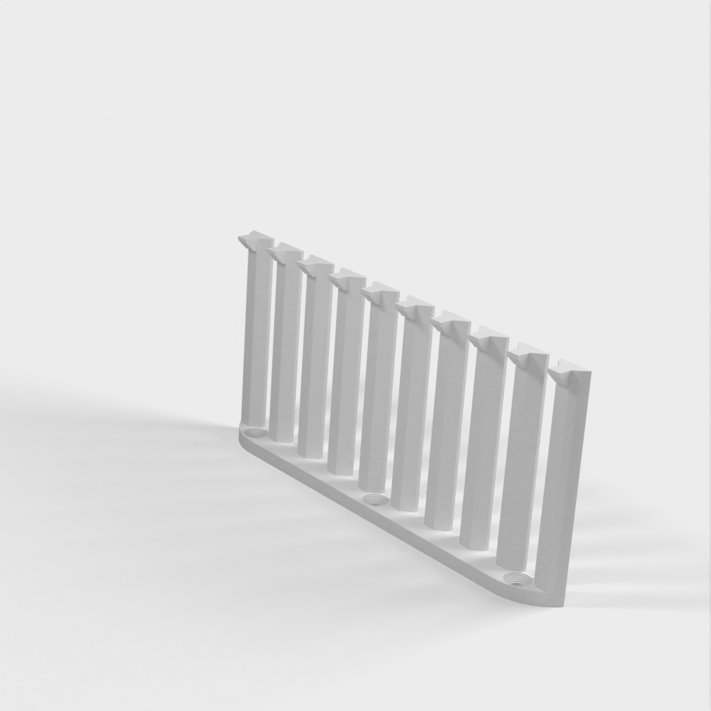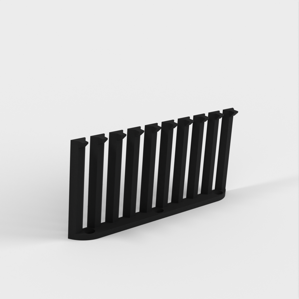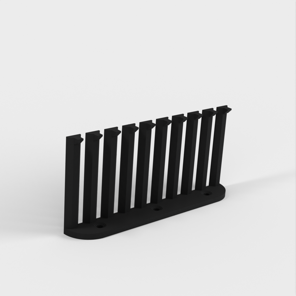 Dette er en parametrisk kabelorganisator designet til at organisere dine kabler effektivt. Med 10 arme giver det plads til 9 kabler med 4mm afstand mellem hver. Den nuværende design er forbedret med et lavere bagmonteringshøjde sammenlignet med version 1. Skruerne er konstrueret til at være lette at installere med undersænkede M4 skruer. Det er perfekt til ethvert laboratorium eller arbejdsplads, der kræver kabelorganisation.