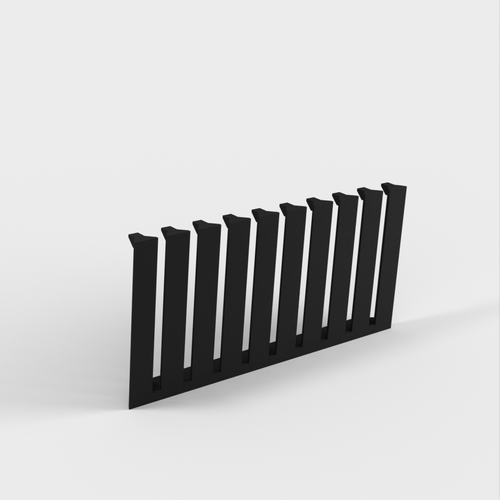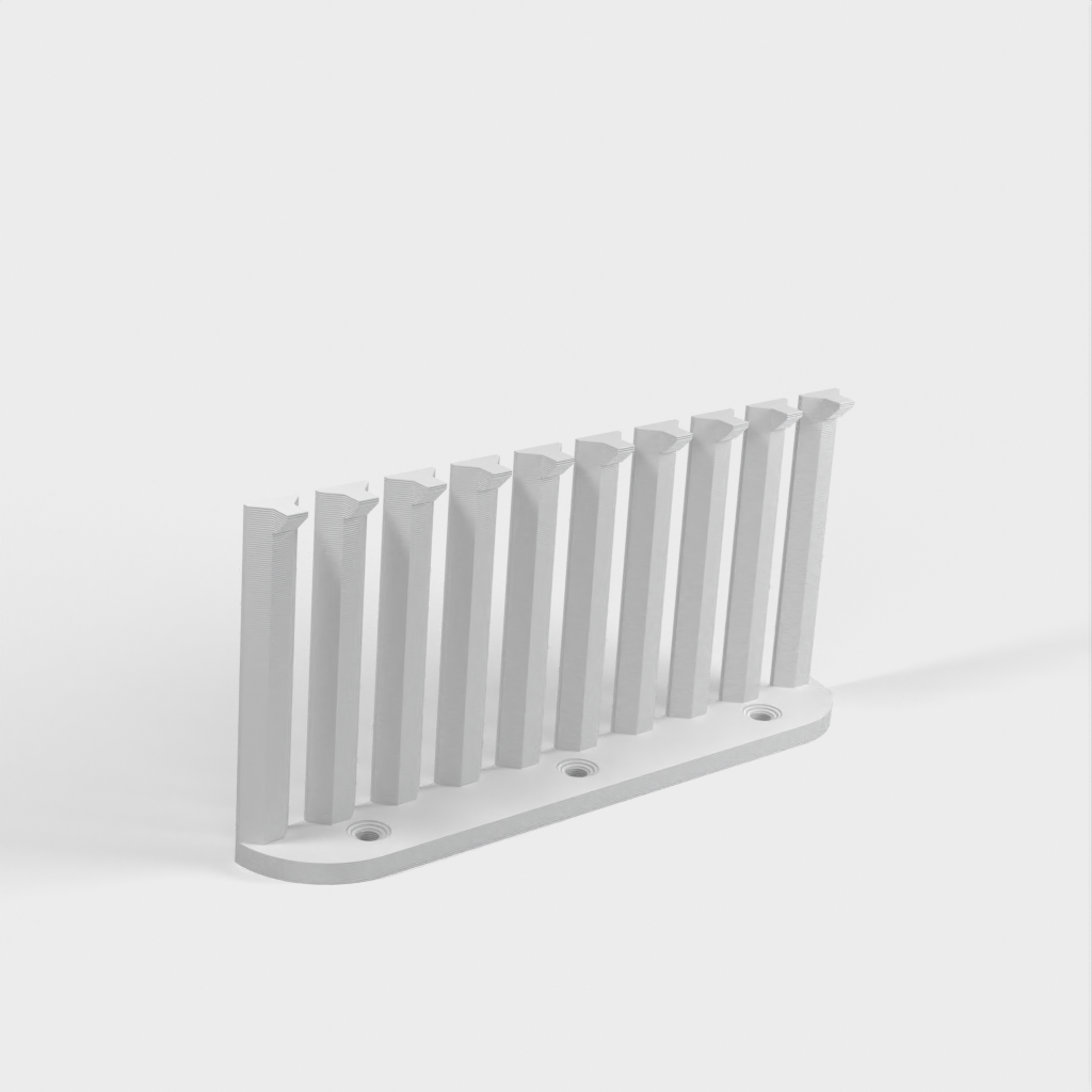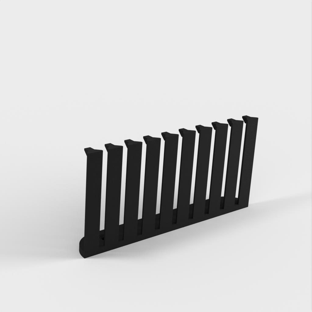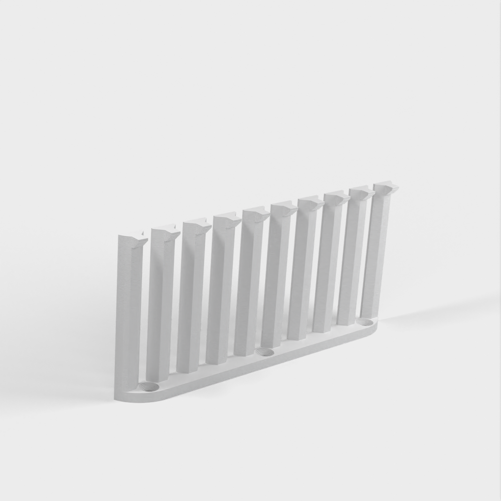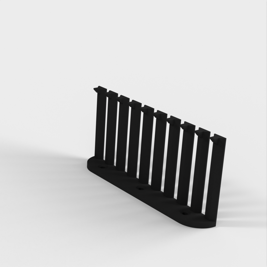 Dette er en parametrisk kabelorganisator designet til at organisere dine kabler effektivt. Med 10 arme giver det plads til 9 kabler med 4mm afstand mellem hver. Den nuværende design er forbedret med et lavere bagmonteringshøjde sammenlignet med version 1. Skruerne er konstrueret til at være lette at installere med undersænkede M4 skruer. Det er perfekt til ethvert laboratorium eller arbejdsplads, der kræver kabelorganisation.