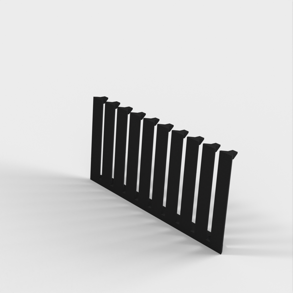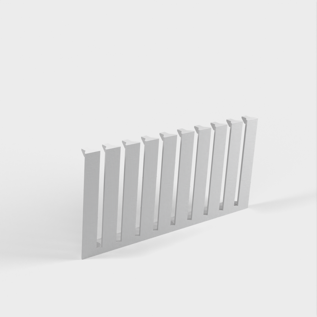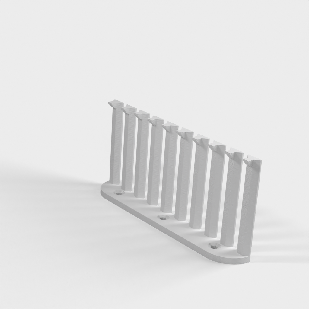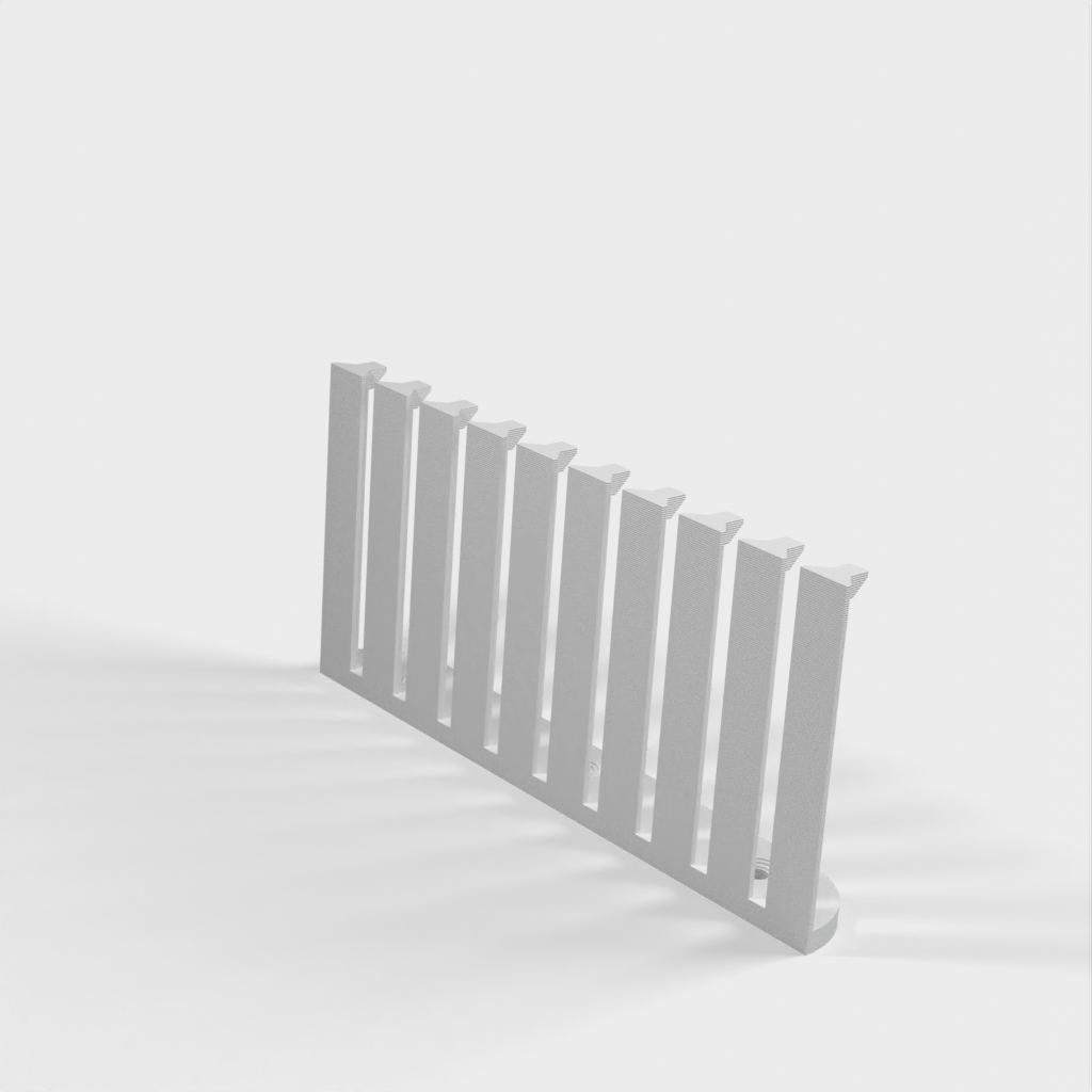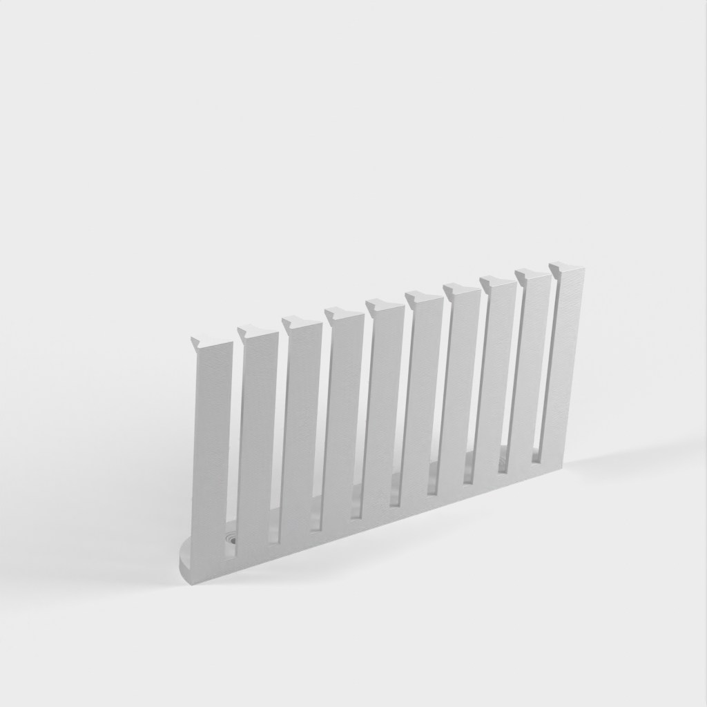Dette er en parametrisk kabelorganisator designet til at organisere dine kabler effektivt. Med 10 arme giver det plads til 9 kabler med 4mm afstand mellem hver. Den nuværende design er forbedret med et lavere bagmonteringshøjde sammenlignet med version 1. Skruerne er konstrueret til at være lette at installere med undersænkede M4 skruer. Det er perfekt til ethvert laboratorium eller arbejdsplads, der kræver kabelorganisation.