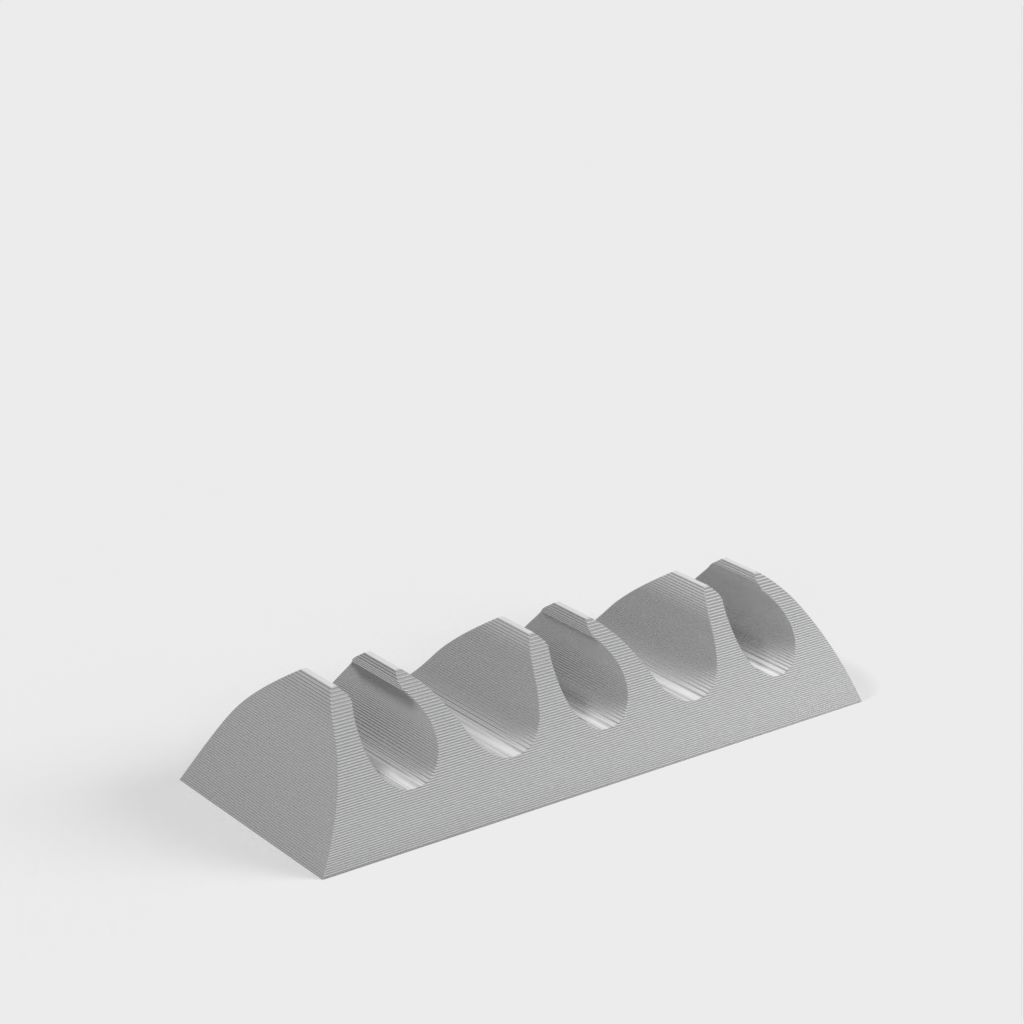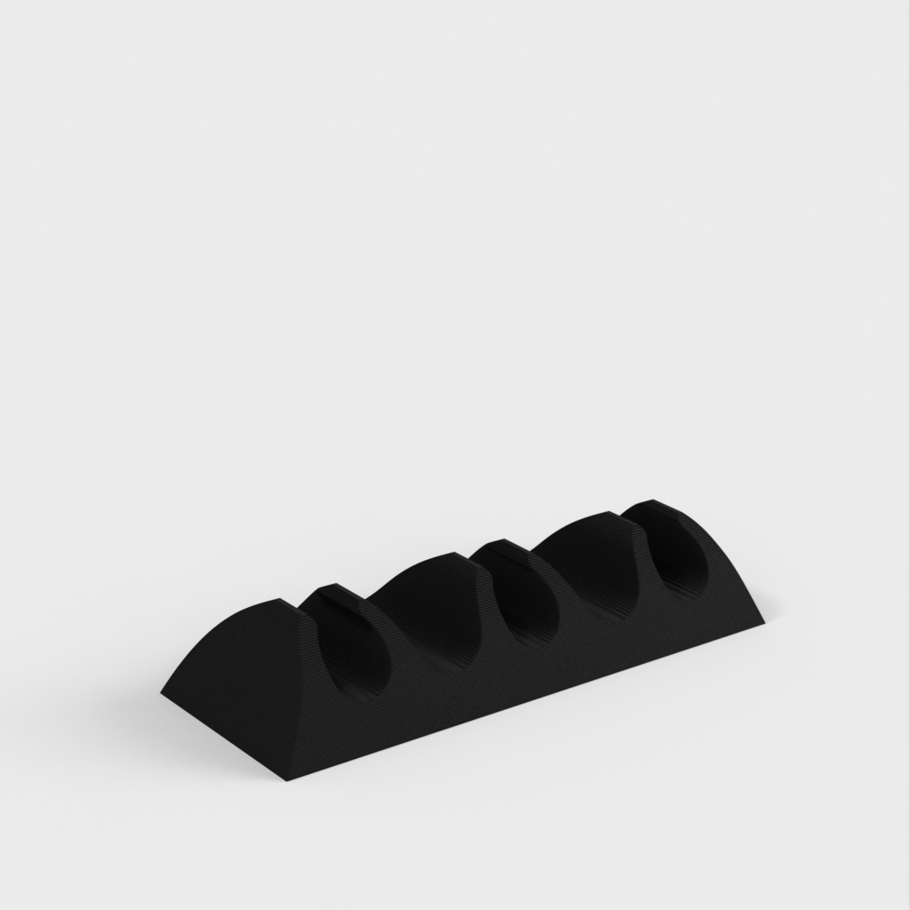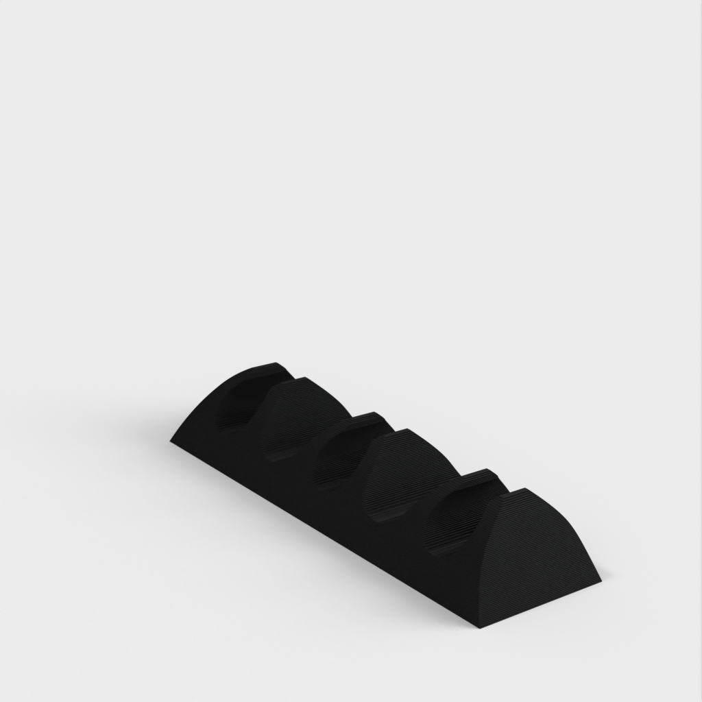 Denne kabelorganisator er specifikt designet til de standard USB-kabler, som medfølger de fleste telefoner (0,37 mm bredde) - for eksempel iPhone's USB-C kabel. Den kan fastgøres på enhver overflade med en lille kommandostribe for nem fjernelse. Se billederne for reference.
