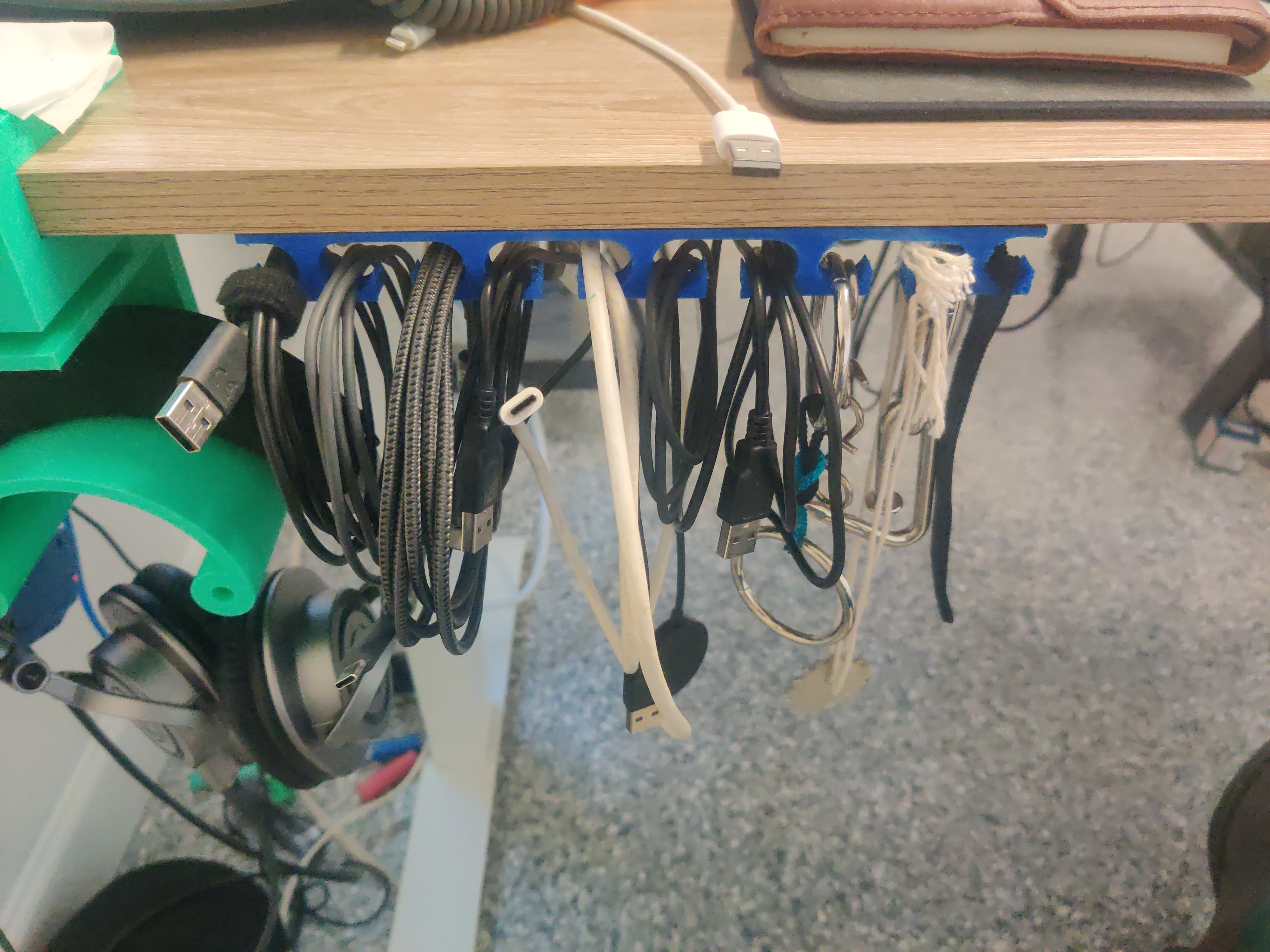 Dette er en lille kabelarrangør, jeg lavede for at holde USB-kablerne pænt oprullet på mit skrivebord. Jeg fastgjorde det under mit skrivebord ved hjælp af dobbeltklæbende tape. Jeg brugte personligt 10mm Tesa tape, men 3M tape kan også bruges. Dette produkt hjælper med at holde dit område pænt og ryddeligt ved at organisere dine USB-kabler nemt og effektivt.