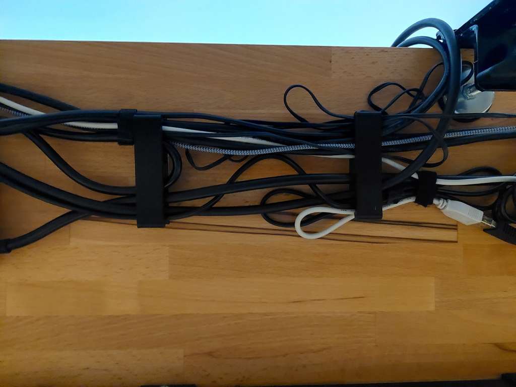 Denne praktiske kabelholder er designet til effektivt at organisere dine kabler og skabe et mere ryddeligt arbejdsområde. Uanset om det er tykke strømkabler eller diverse datakabler, kan denne holdbare løsning håndtere flere kraftige kabler, som ofte ligger og roder på eller omkring dit skrivebord.
