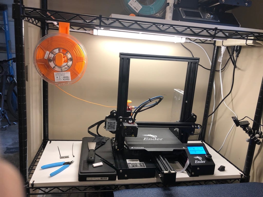 Installationen er ligetil; den klikkes nemt på wirehylden og skubbes i position, hvilket frigør værdifuld plads på dit arbejdsområde. Spolens placering er ofte optimal for populære printere som Ender 3, men kan varieres for at passe til din specifikke printer og hyldeopsætning. Denne løsning tilbyder en organiseret og effektiv måde at opbevare og anvende dit filament på, bidragende til et mere ryddeligt og funktionelt 3D-printermiljø.
