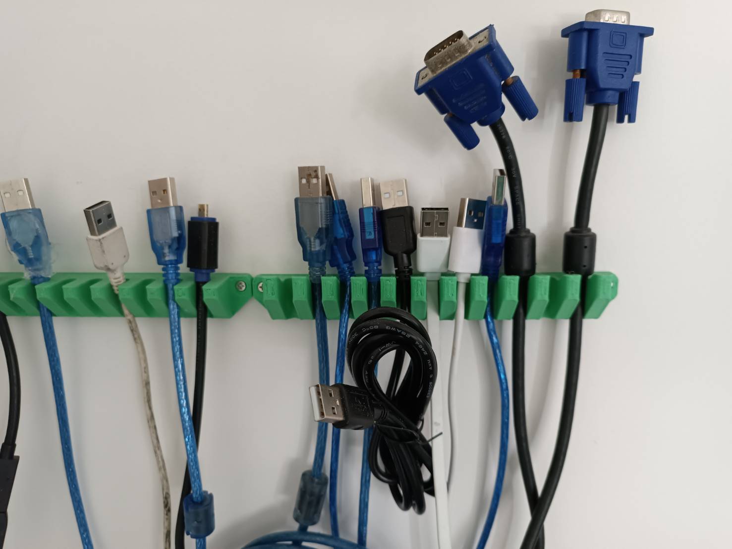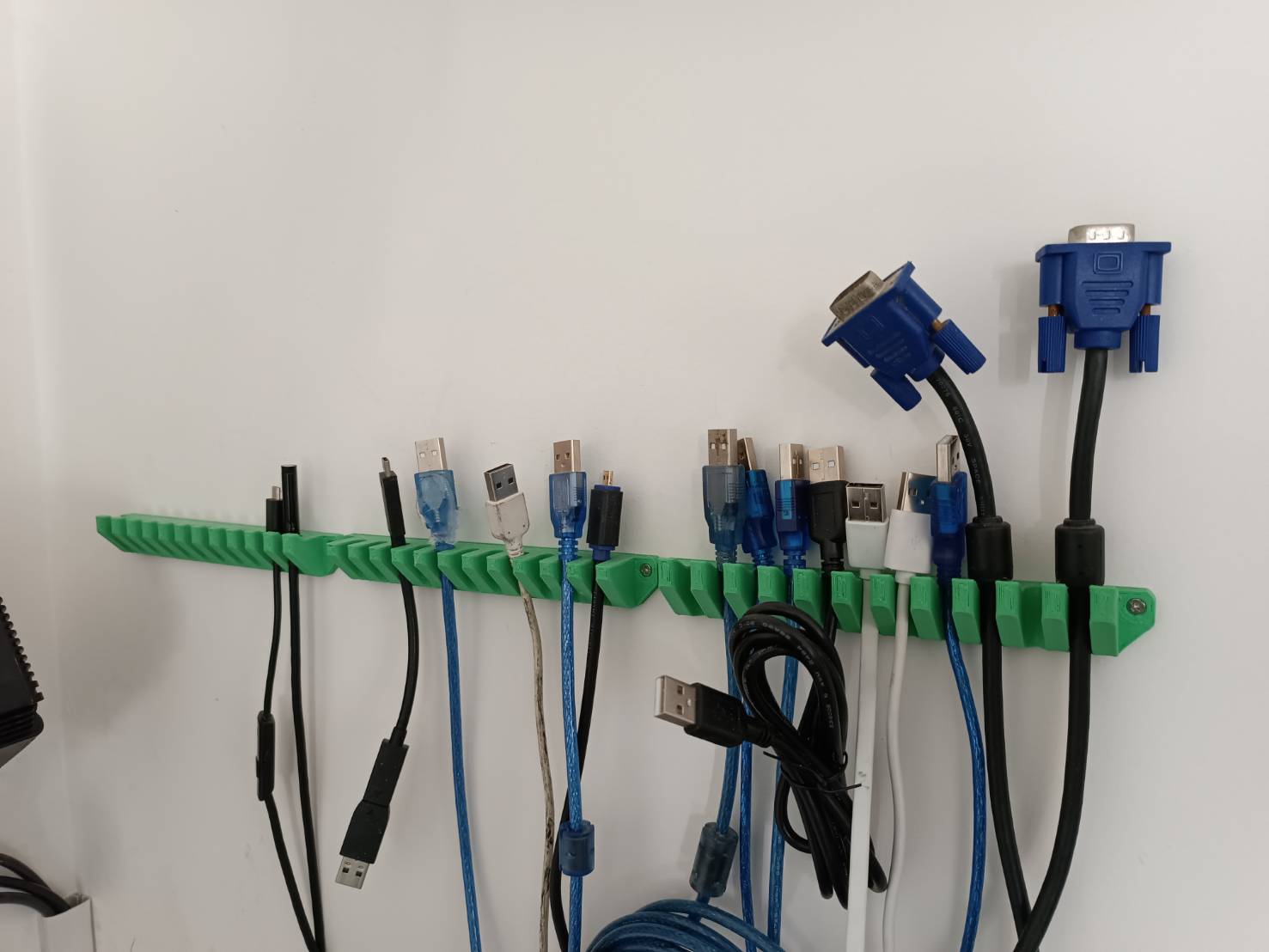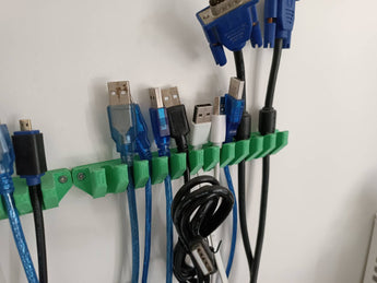 Denne praktiske kabelholder er designet til effektivt at organisere dine ledninger og kabler. Den hjælper med at skabe et ryddeligt og overskueligt miljø, uanset om det er på dit kontor, i hjemmet eller et andet sted, hvor kabler hurtigt kan skabe rod. Fremstillet af holdbart PLA-materiale, er denne ledningsholder robust nok til sikkert at holde forskellige typer af kabler, og forhindrer dem i at filtre sig sammen.