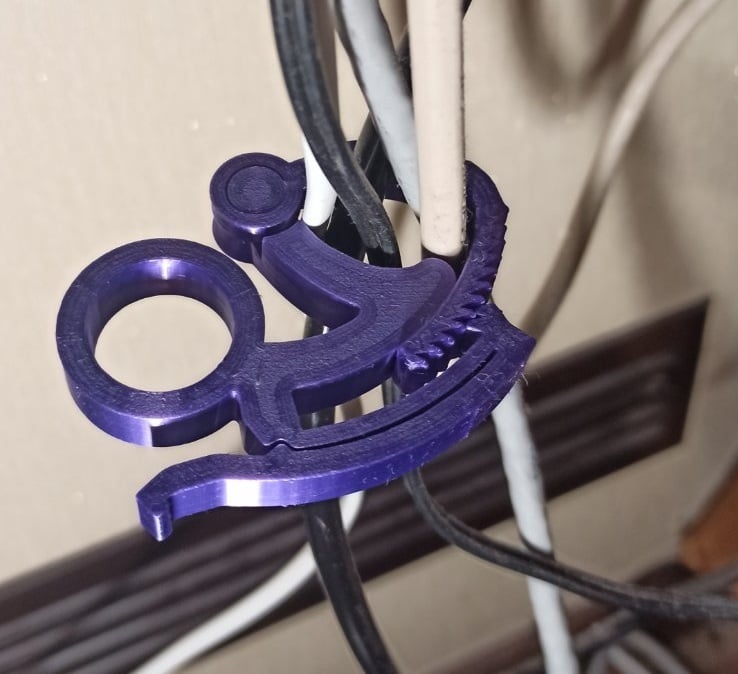 Er du træt af løse og sammenfiltrede kabler på dit skrivebord eller arbejdsområde? Denne innovative kabelklemme tilbyder en praktisk løsning til at holde dine ledninger organiserede. Designet som en print-in-place genstand, kræver denne kabelholder ingen skruer eller yderligere værktøjer for at blive brugt. Den fastgøres let og effektivt omkring dine kabler, hvilket sikrer, at de forbliver pænt samlet og på plads. Ideel til at skabe et ryddeligt og funktionelt miljø, hvor kabelstyring er en prioritet. Med denne skruefri kabelklemme kan du nemt forbedre orden og æstetik i ethvert rum.