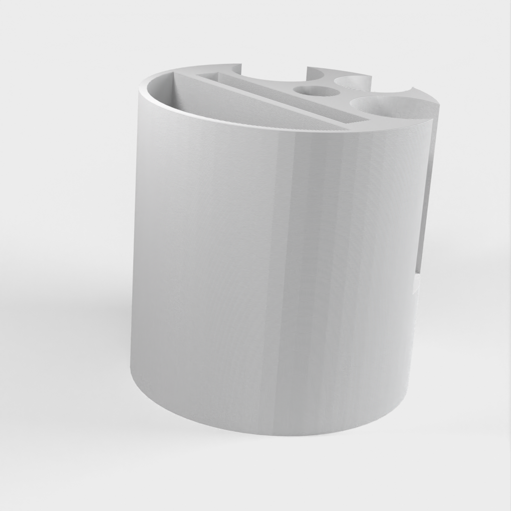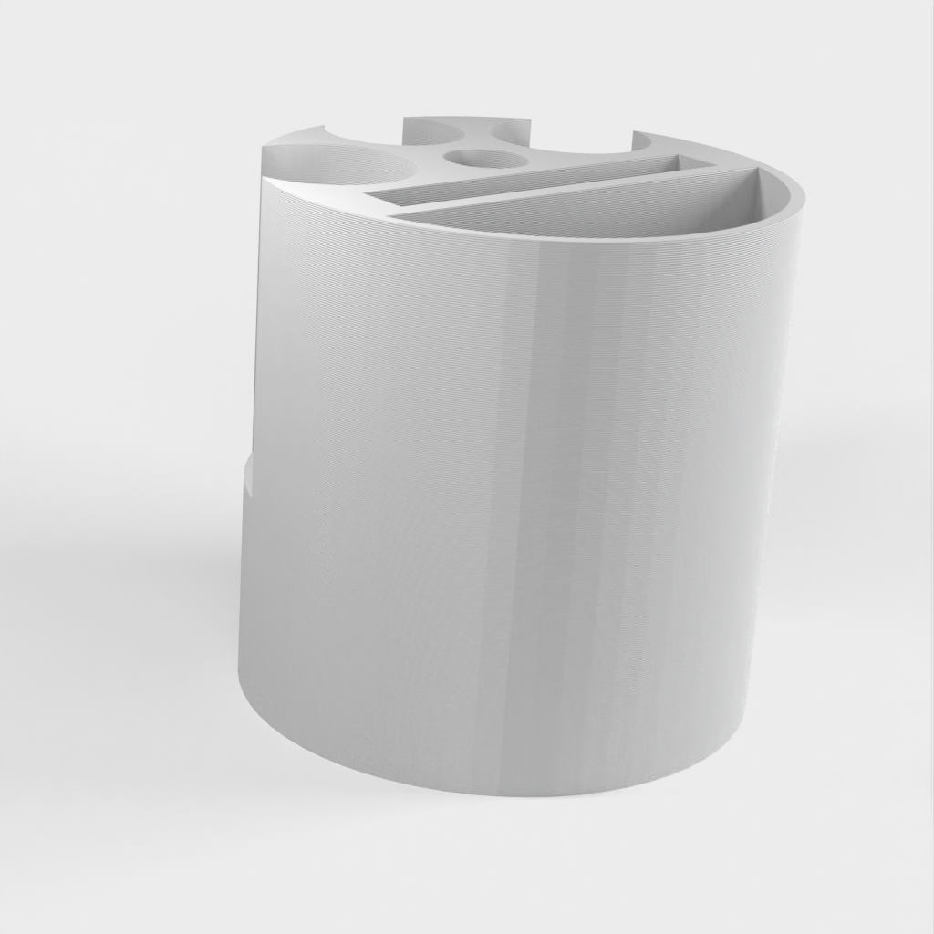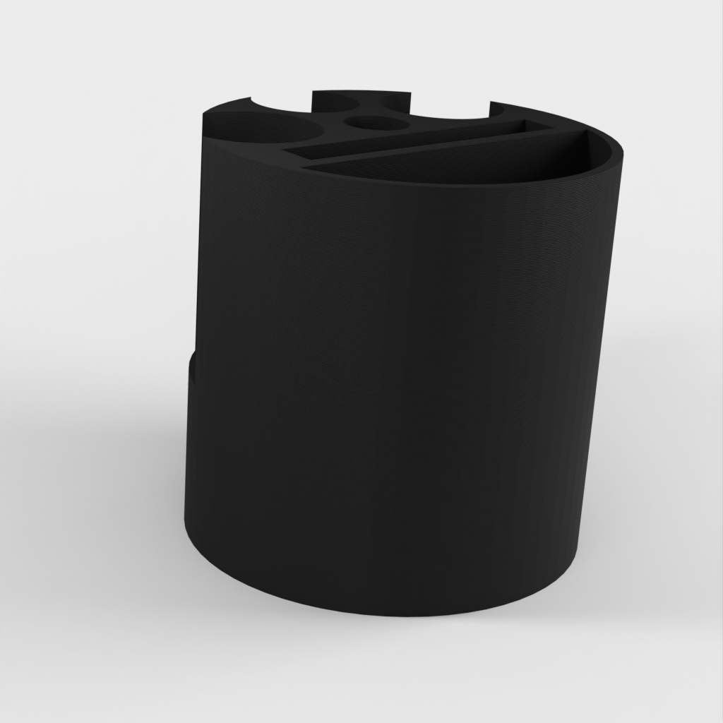 Den er designet til at passe perfekt ind i kopholderen af din bil eller tog, hvilket gør det til en ideel løsning for dem, der er på farten og har behov for en organiseret opbevaringsløsning.