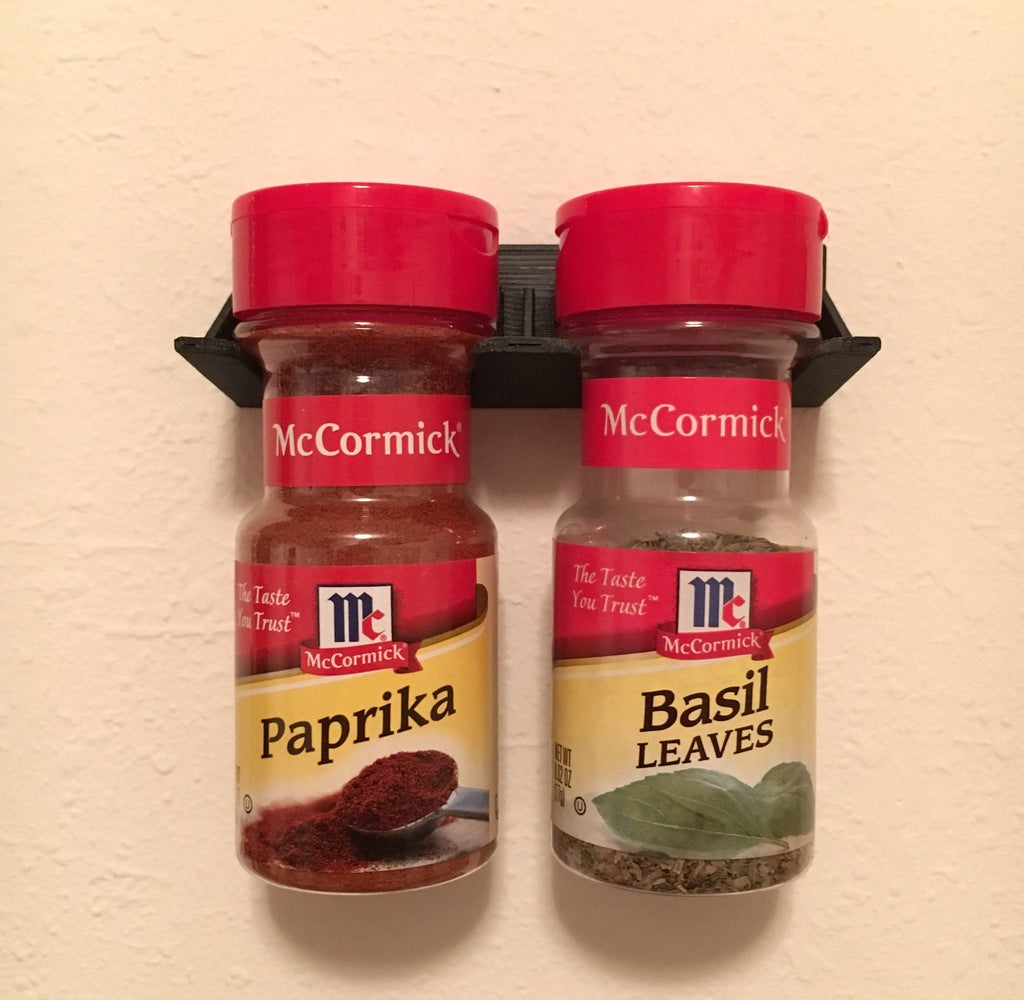 Et 2-plads krydderihylde designet til at passe de høje McCormick-flasker med smal hals. Denne hylde kan nemt monteres på væggen i dit køkken eller spiseplads og er ideel til opbevaring af dine yndlingskrydderier, hvilket giver dig nem adgang, mens du laver mad.