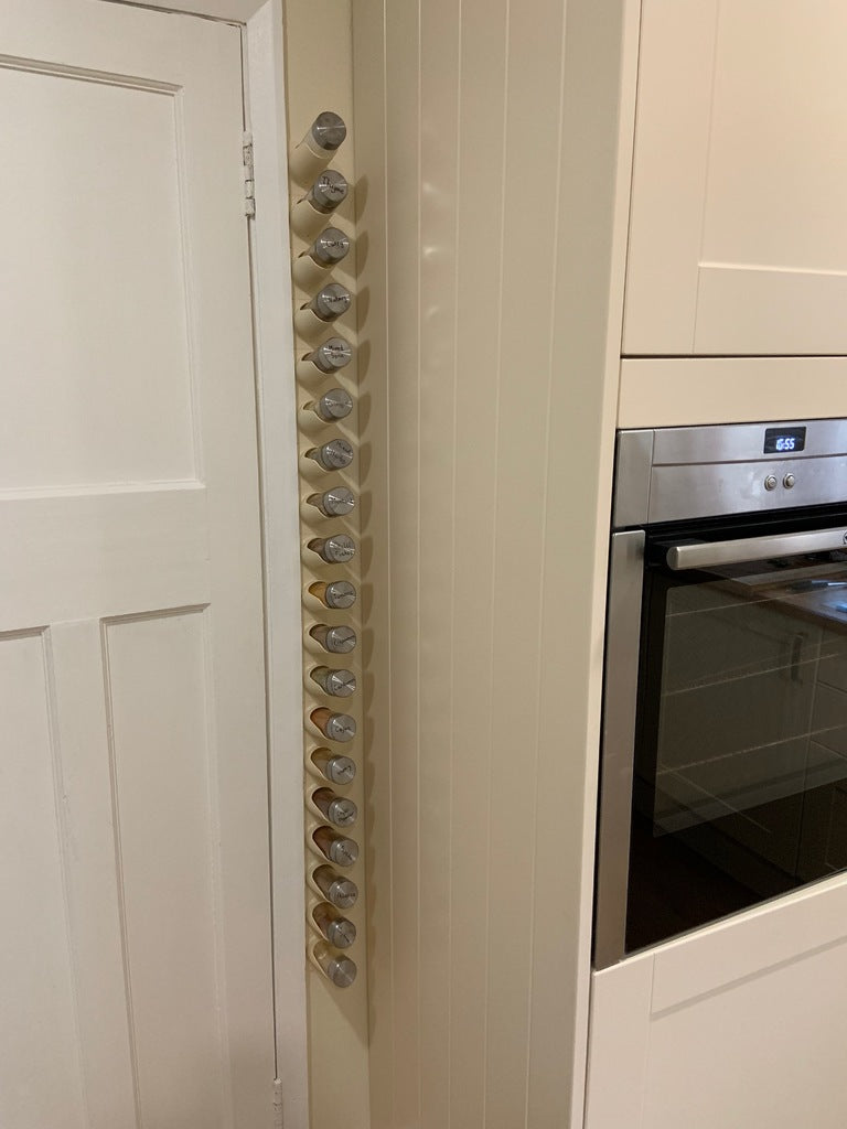 Med en farve der matcher dine køkkenvægge og skabe, tilføjer denne spice jar holder et stilrent udtryk til dit hjem. Optimer dit køkken og tilføj funktionalitet med denne elegante løsning til krydderiopbevaring.