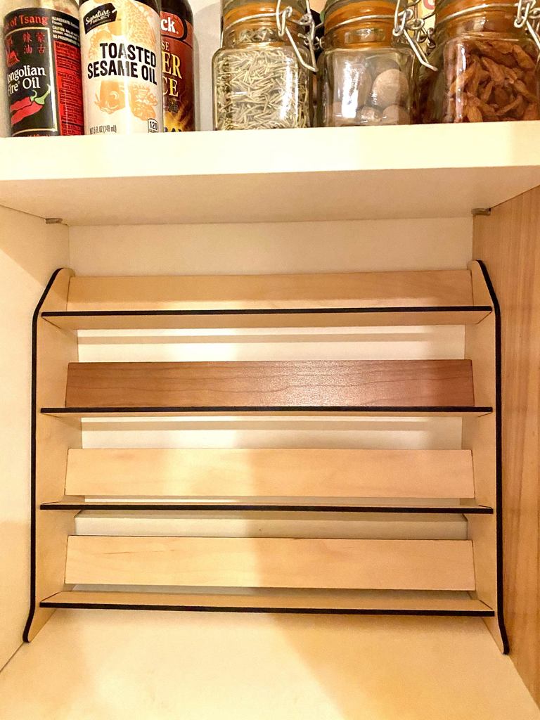 Denne praktiske krydderihylde er designet til at optimere pladsen i dit køkkenskab og holde dine krydderier organiseret og let tilgængelige. Hylden er specialdesignet til at rumme standard 2-tommer krukker, hvilket giver et ensartet og ryddeligt udtryk i dit køkken.