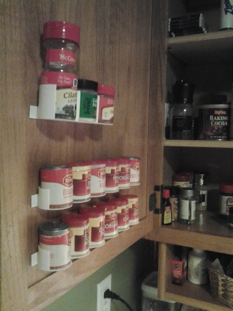 Hustruen ønskede mere skabsplads, så... REPRAP TIL REDNING!! Dette krydderihylde er et praktisk opbevaringsværktøj til dine krydderier og kan nemt indpasse sig i ethvert køkkenskab, hvilket skaber mere plads og orden. Det er designet til effektivt at organisere og opbevare dine krydderier og gør det nemt at finde og bruge dem, når du har brug for det.