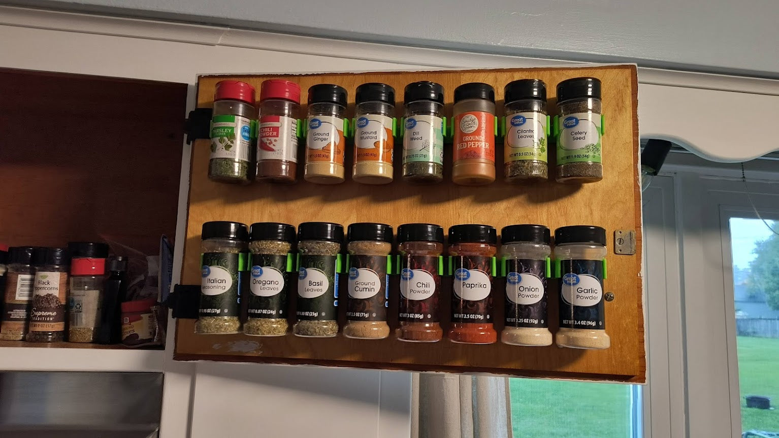 Optimer din køkkenplads og hold dine krydderier organiseret med denne praktiske krydderihylde, designet til nem montering på enten skabslågen eller væggen. Den robuste konstruktion sikrer, at dine krydderier holdes sikkert på plads. Hylden passer perfekt til beholdere med en diameter mellem 42 mm og 47 mm, hvilket gør den kompatibel med de fleste almindelige krydderiglas.