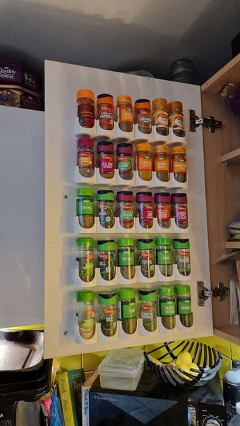Denne praktiske krydderihylde er designet til montering på indersiden af dine skabslåger, hvilket optimerer opbevaringspladsen i dit køkken. Hylden giver en struktureret løsning til dine krydderier, så de er lette at finde og tilgå under madlavning. Det bidrager til at holde orden i skabet og skaber en mere organiseret arbejdsflade. Produktet er en funktionel tilføjelse for at forbedre din krydderiopbevaring og bidrage til et ryddeligt køkkenmiljø.