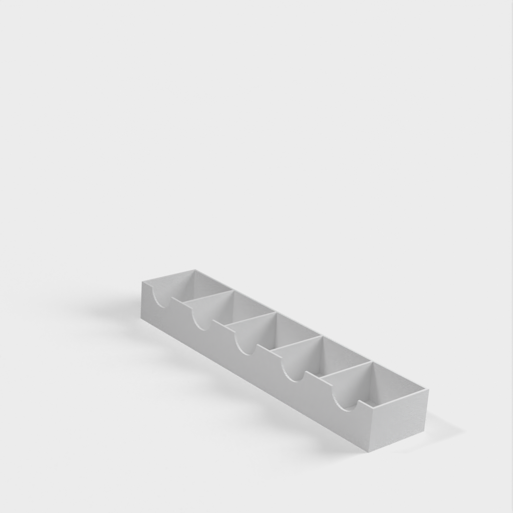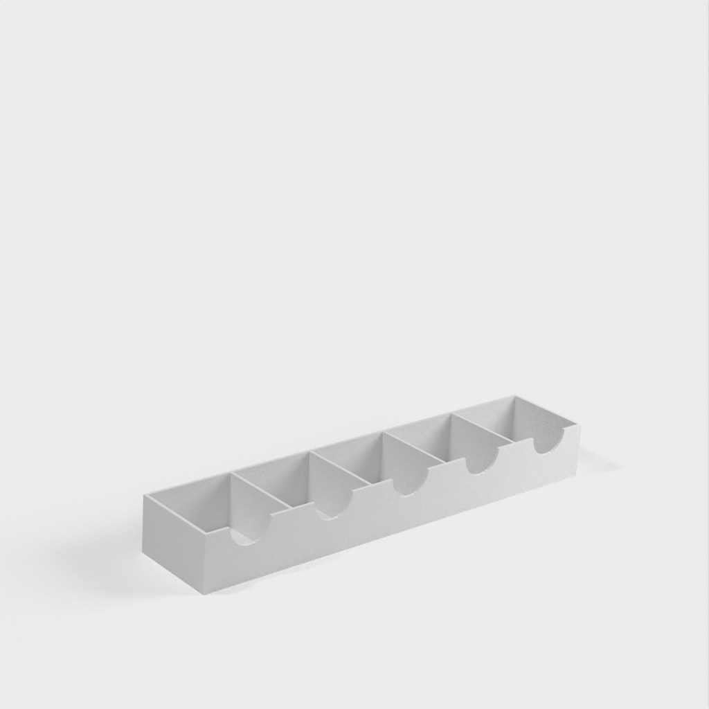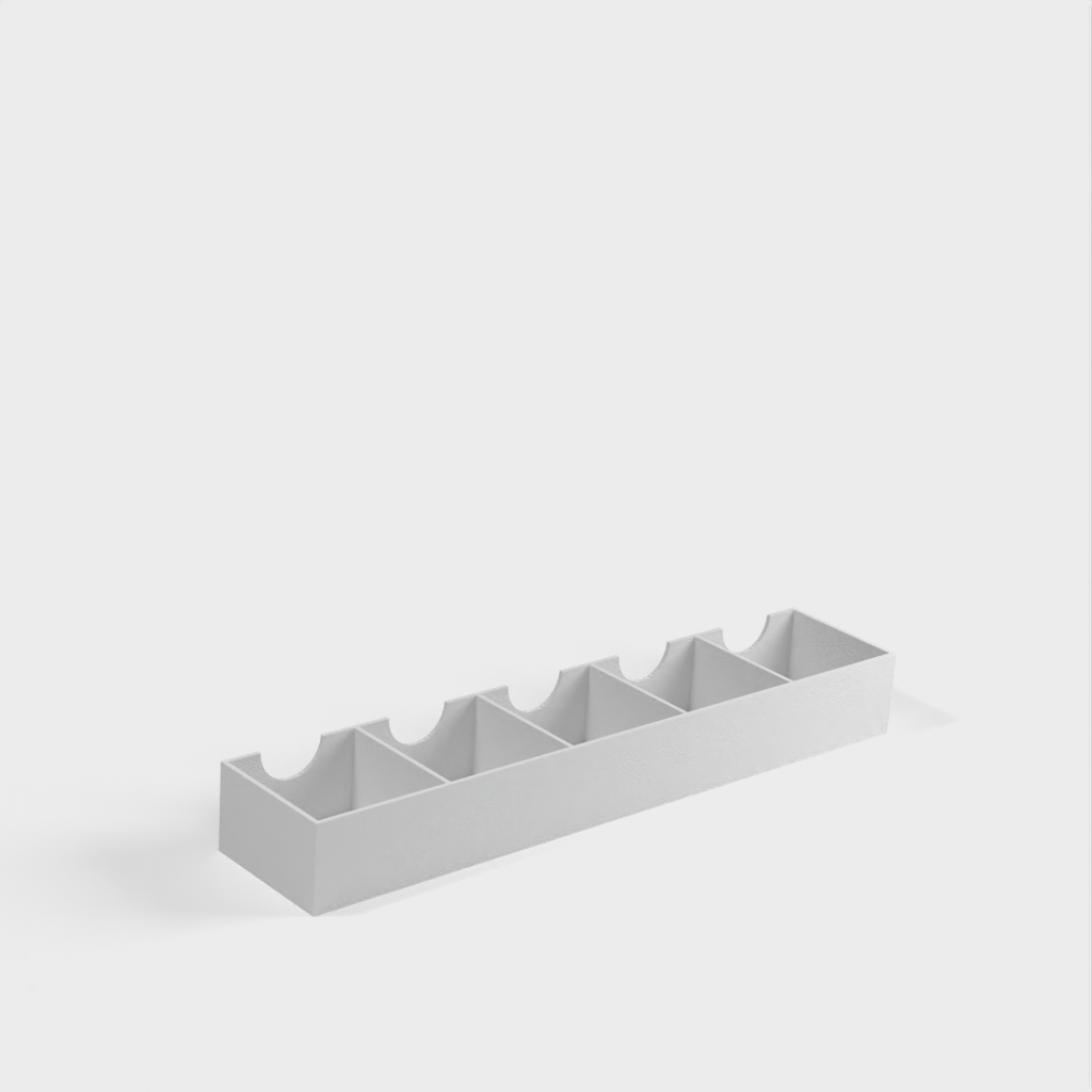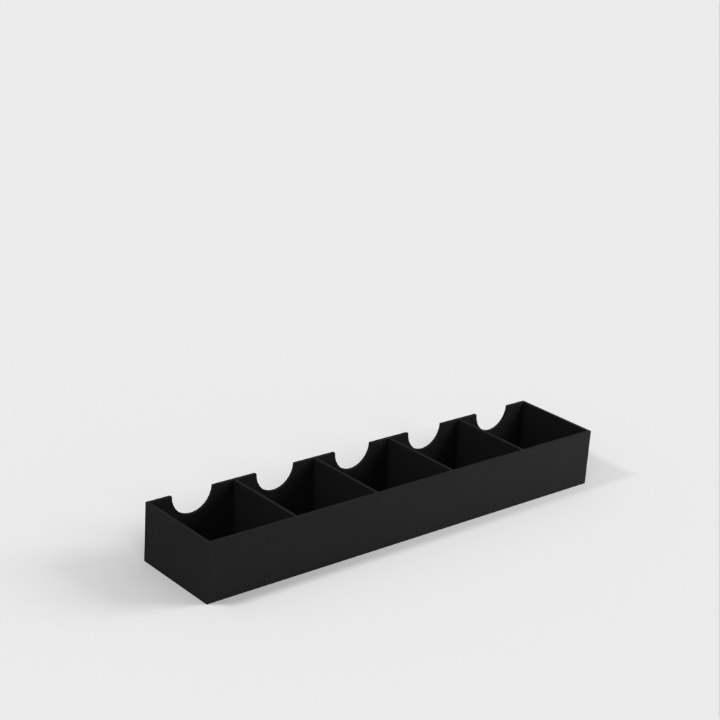 Denne holder kan nemt monteres på skabsdøre ved hjælp af dobbeltklæbende tape for nem og praktisk opbevaring. Den kan tilpasses til dine specifikke behov ved hjælp af OpenSCAD og kan holde kvadratiske 45 mm flasker.