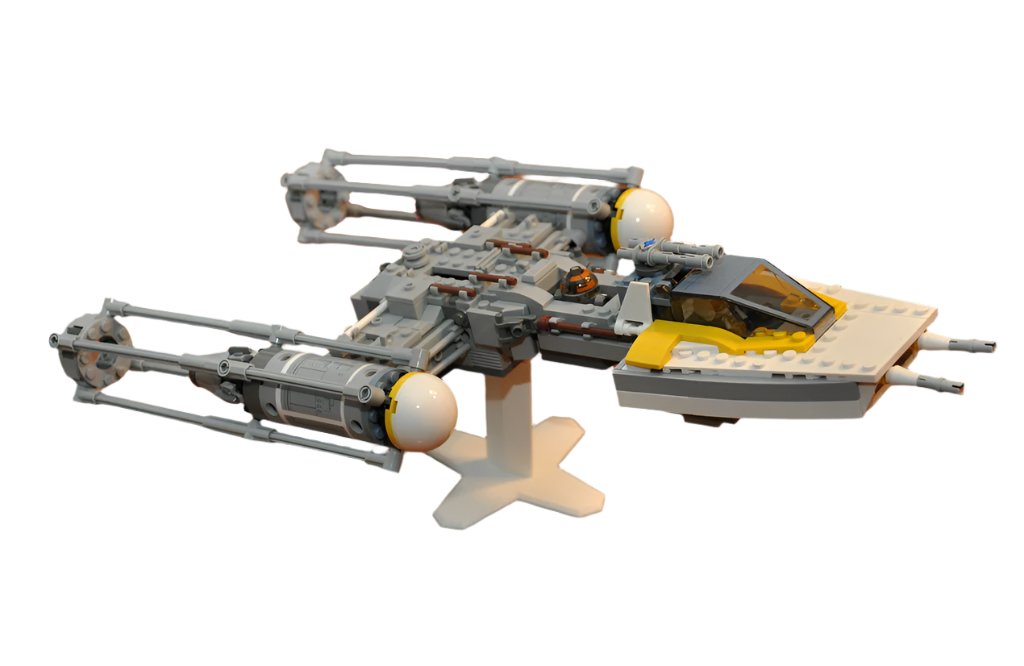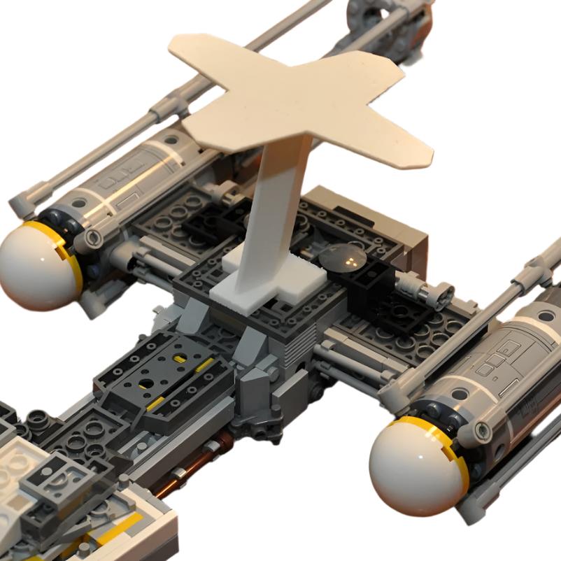 Dette er en display stand til LEGO 75172, Y-Wing Starfighter. Denne stand sikrer, at din Y-Wing Starfighter kan vises sikkert og stabilt. Den øverste del (klodsen) ville nyde godt af en højere opløsning.
