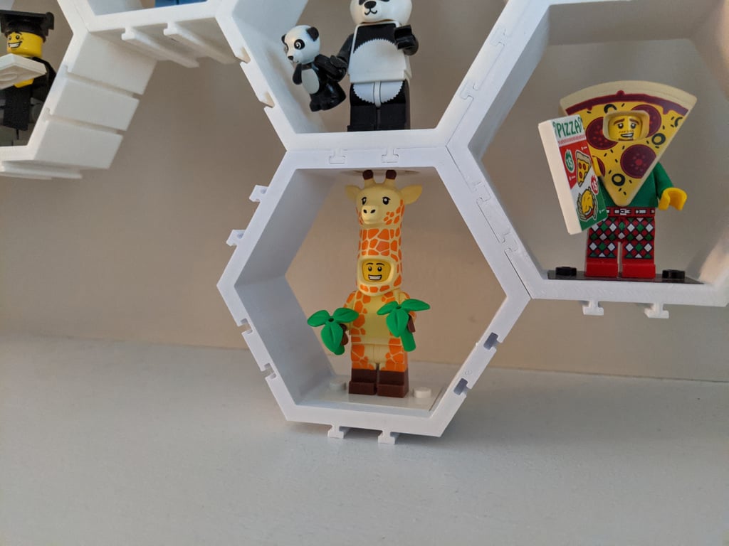 Præsenter dine minifigurer med stil ved hjælp af dette unikke hexagonale udstillingssystem. Hver celle er designet til at rumme en minifigur med en 4x3 base, hvilket giver en perfekt pasform og en strømlinet æstetik. Systemet er alsidigt og kan tilpasses til forskellige stilarter.