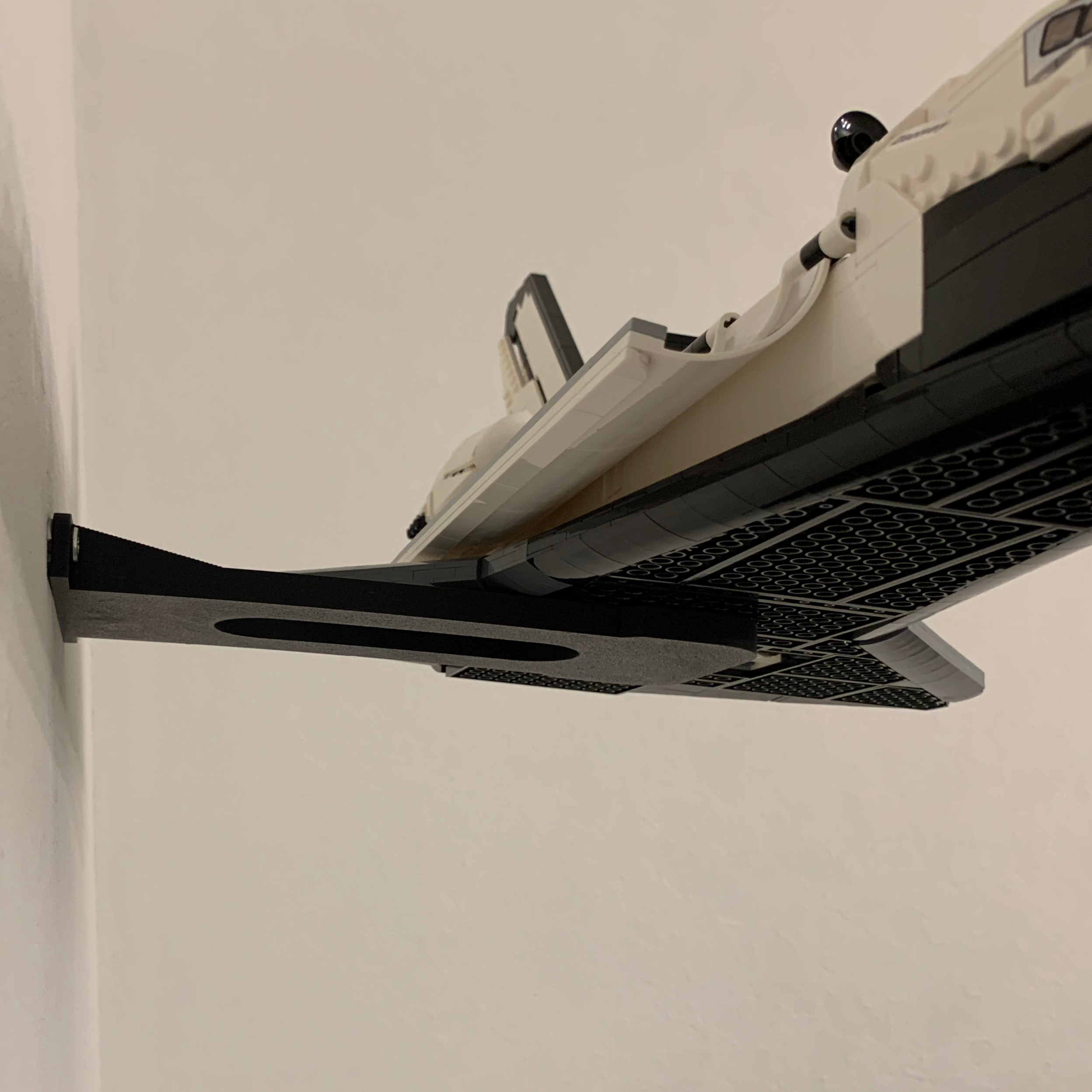 Lego Opdagelse Rumfærge vægmontering. Perfekt til at fremvise din LEGO rumfærge på væggen! Kan fastgøres på væggen med skruer på 5mm i diameter. Ønsket vinkel kan indstilles efter præference.
