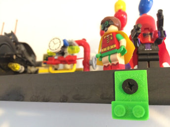 Denne Lego Minifigure vægstativ er designet til at fremvise minifigurer med bagtilbehør. Minifiguren er forbundet bag benene.
