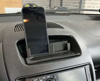 Enkel montering til at sidde på instrumentbrættet. Kan indeholde en almindelig iPhone 12/13/14 og en iPhone 12/13 mini.