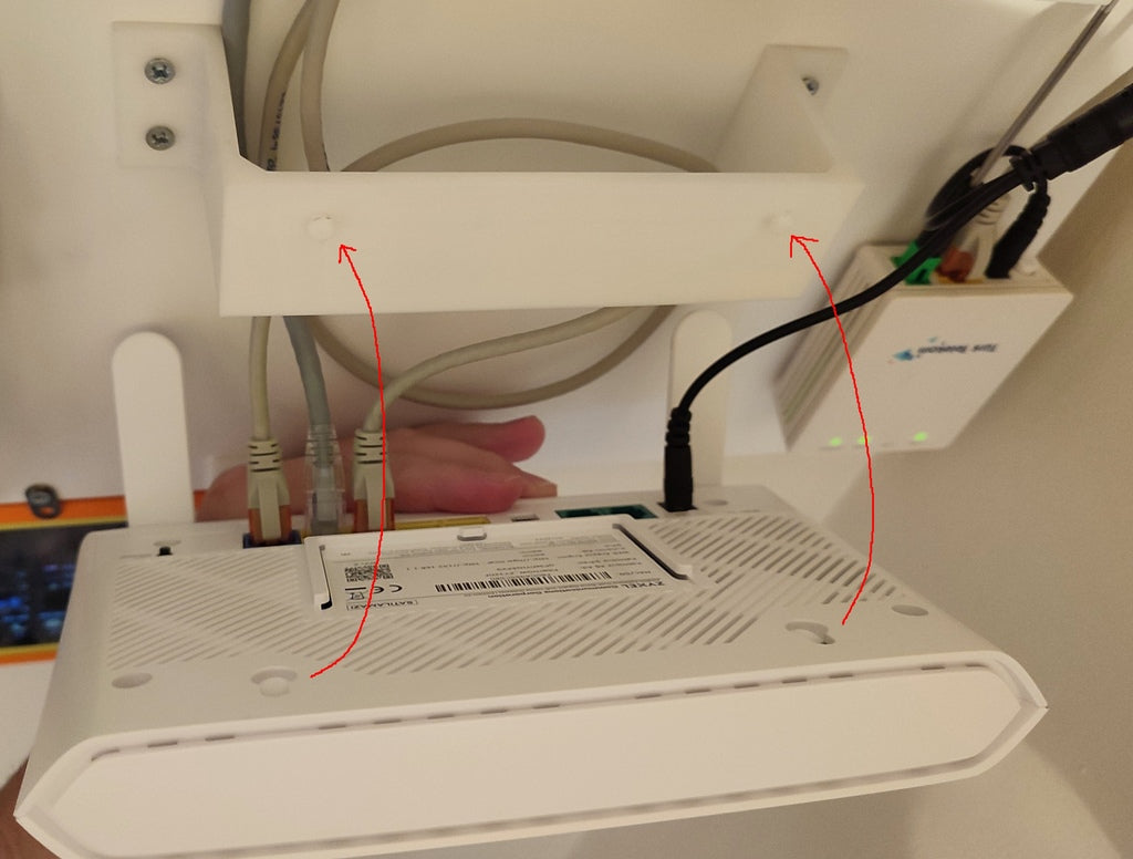 Dette er en 3d printet adapter til at montere Zyxel EX3301-T0-modem på væggen. Adapteren giver nok plads (5,5 cm) mellem modemet og væggen til at lave alle kabelforbindelser på bagsiden.