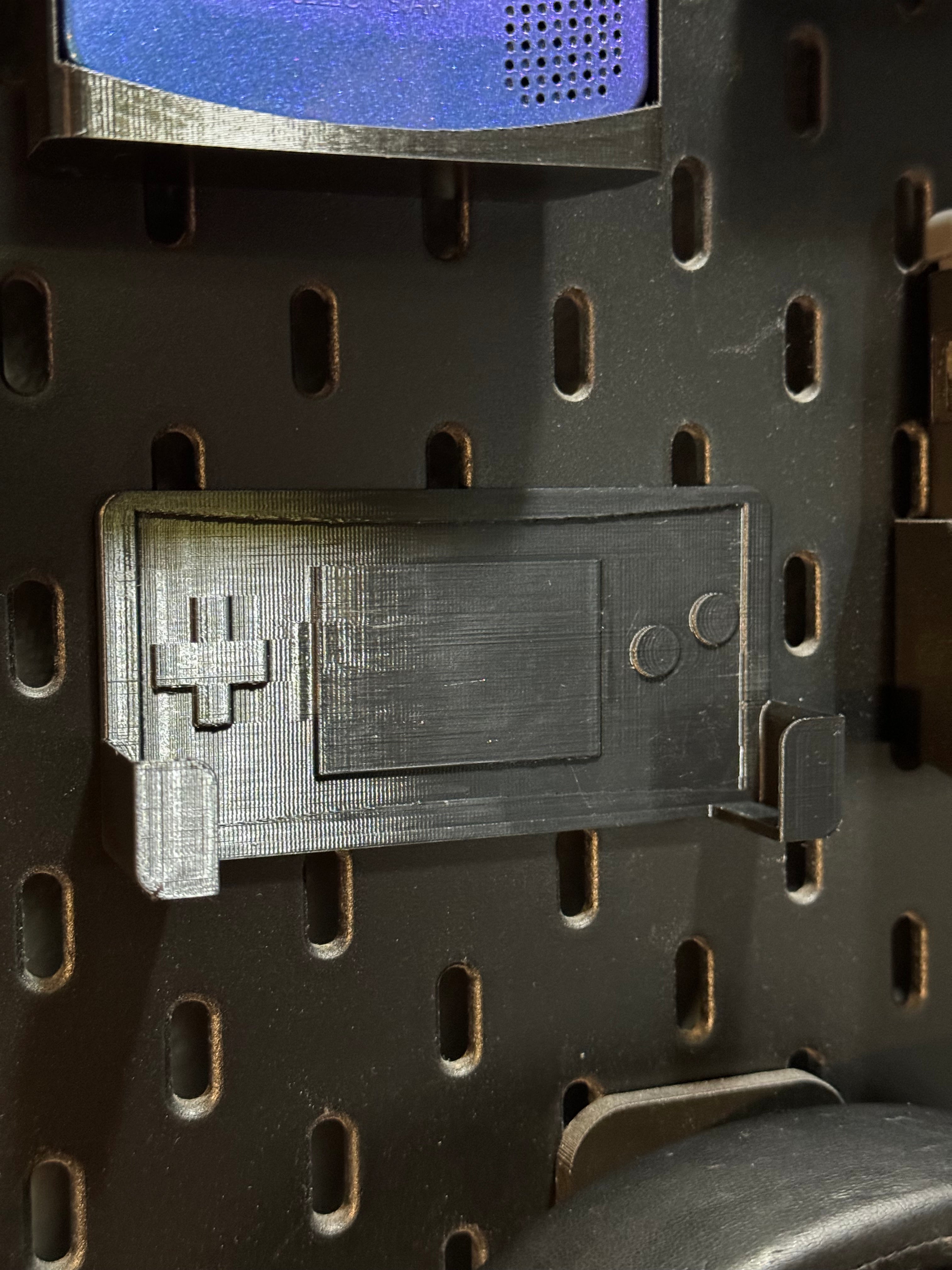Vis din Gameboy Micro med stil ved hjælp af denne unikke mount, der er designet specifikt til at blive brugt på IKEA Skadis pegboard. Denne mount gør det muligt at sikre din Gameboy Micro på en organisert og præsenterbar måde, hvilket gør den til en ideel løsning til spillere og samlere, der ønsker at vise deres enhed frem. Uanset om du vil have det som en del af din gaming-setup eller blot vil nyde at have din Gameboy Micro synlig, dette produkt kombinerer funktionalitet med et moderne design, perfekt til ethvert rum.