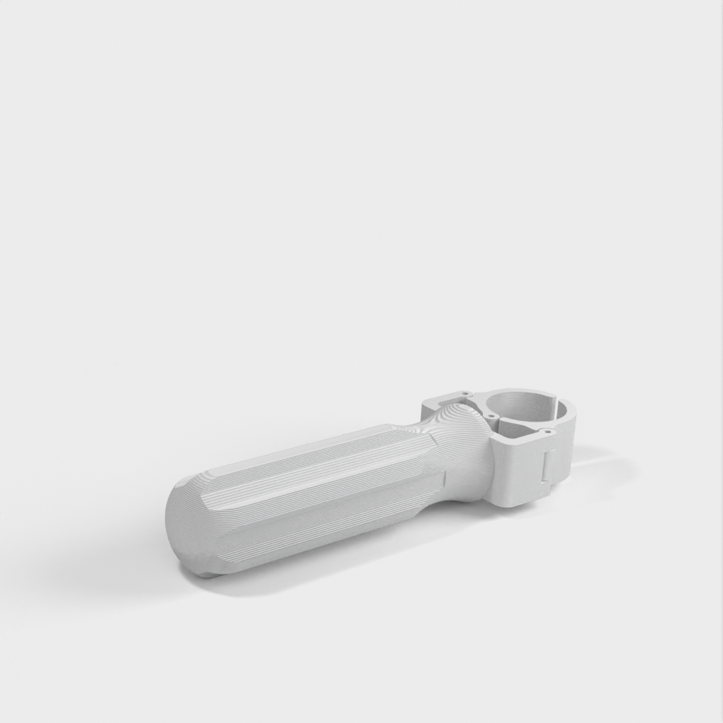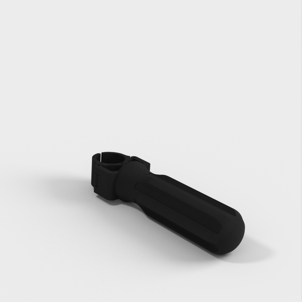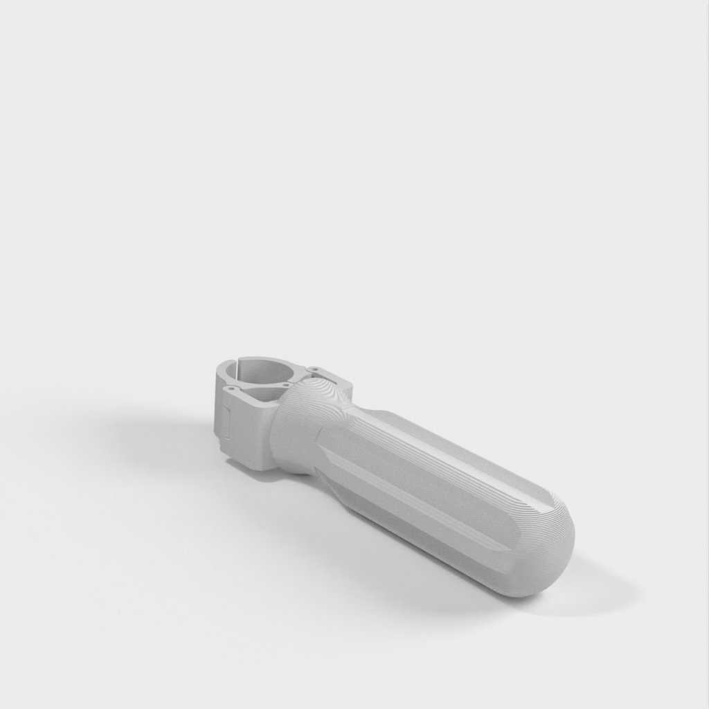 Denne tilgængelighedsgreb til kosteskaft er designet til personer, der har problemer med at gribe og bruge en kost med begge hænder. Den tillader en hånd at gribe kosteskaftet, mens den anden griber denne justerbare forlængelse vinkelret på skaftet, hvilket letter fejebevægelserne for personer med bevægelses- eller fleksibilitetsproblemer.