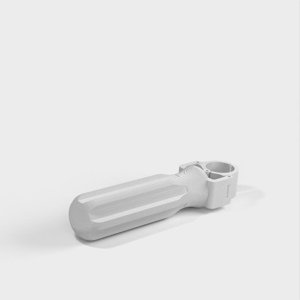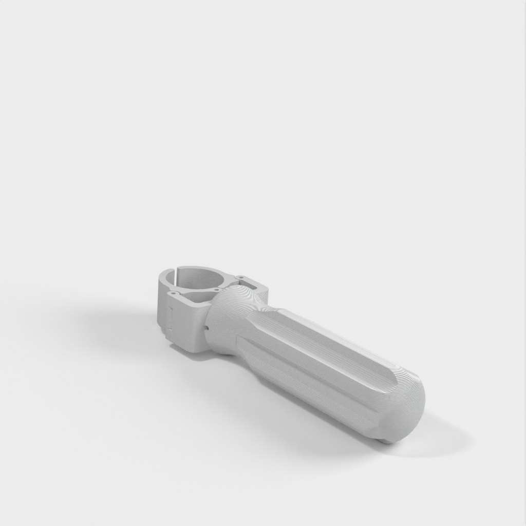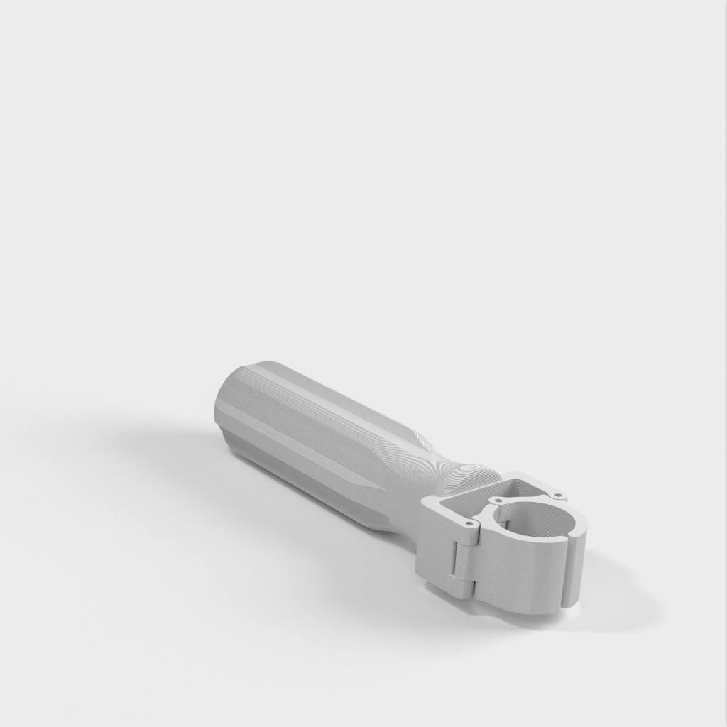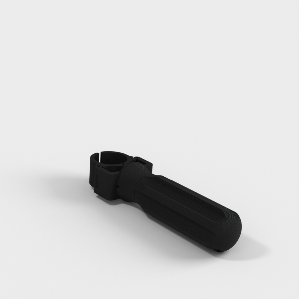 Denne tilgængelighedsgreb til kosteskaft er designet til personer, der har problemer med at gribe og bruge en kost med begge hænder. Den tillader en hånd at gribe kosteskaftet, mens den anden griber denne justerbare forlængelse vinkelret på skaftet, hvilket letter fejebevægelserne for personer med bevægelses- eller fleksibilitetsproblemer.