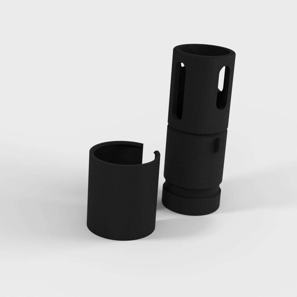 Der medfølger 2 designs. En er en grundlæggende dyse uden specielle funktioner, som kan bruges som et udgangspunkt for at lave andre adaptere og støvsuger værktøjer. Den anden har en begrænsende nøgle (for at stoppe værktøjet fra at rotere frit), vent huller (for at tillade en lille mængde luftstrøm, forhindre støvsugeren i at pulsere, som den føler lav luftstrøm), og en roterende vent dæksel, (som gør det muligt for dig at justere mængden af luftstrømmen passerer)