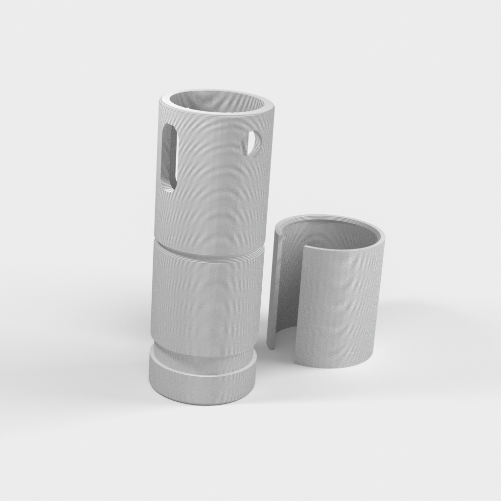 Dette adapter er designet til at give mulighed for Dyson DC59 (og lignende) håndstøvsuger til at opsuge 'rumtasker' (tøj opbevaringstasker). Da disse støvsugere har en fremspringende del, der stopper dysen fra at forsegle flush med rumtaske dysen, kan du ikke få en ordentlig forsegling uden dette stykke.