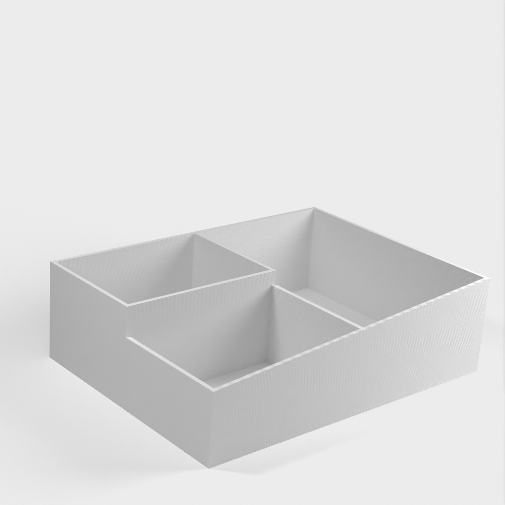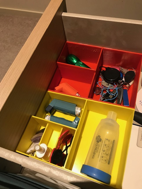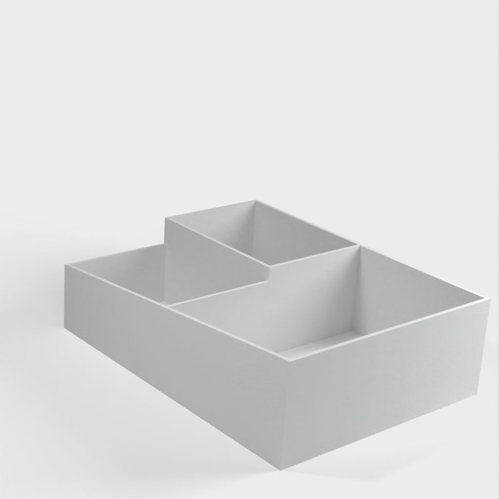 Hver er lavet til at passe i 1/4 område af Ikea 'MALM' natteskuffe, så du er velkommen til at printe 1, 2, 3 eller 4 af dem pr. sengeskuffe. Personligt har jeg kun printet en til venstre og højre for at sidde foran i skuffen, og en til bagerst, men du kunne orientere dem, som du ønsker.
