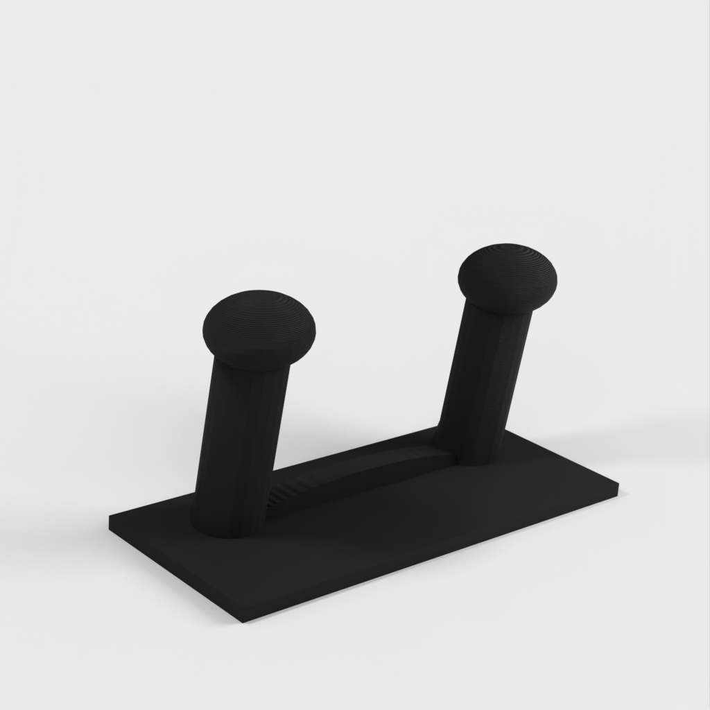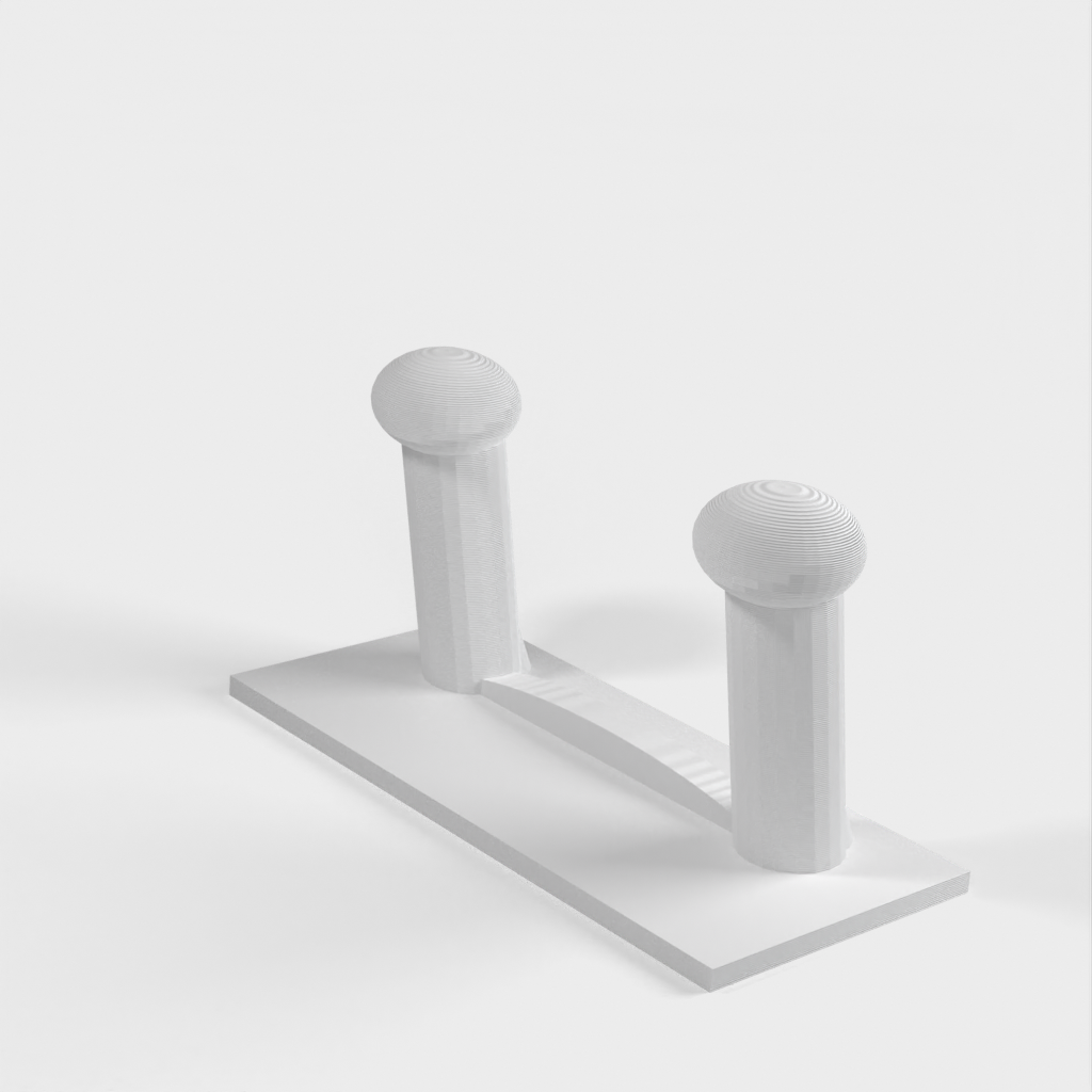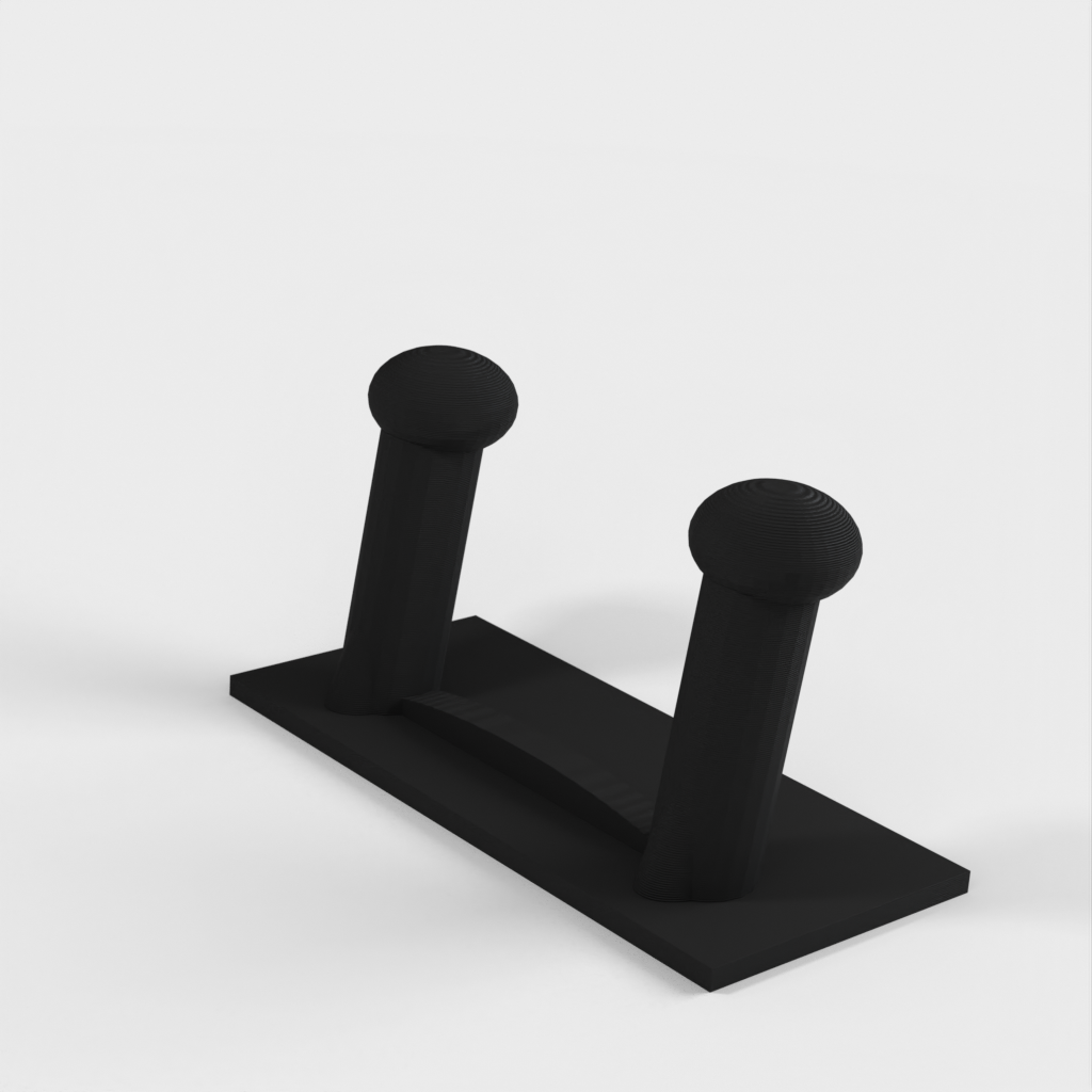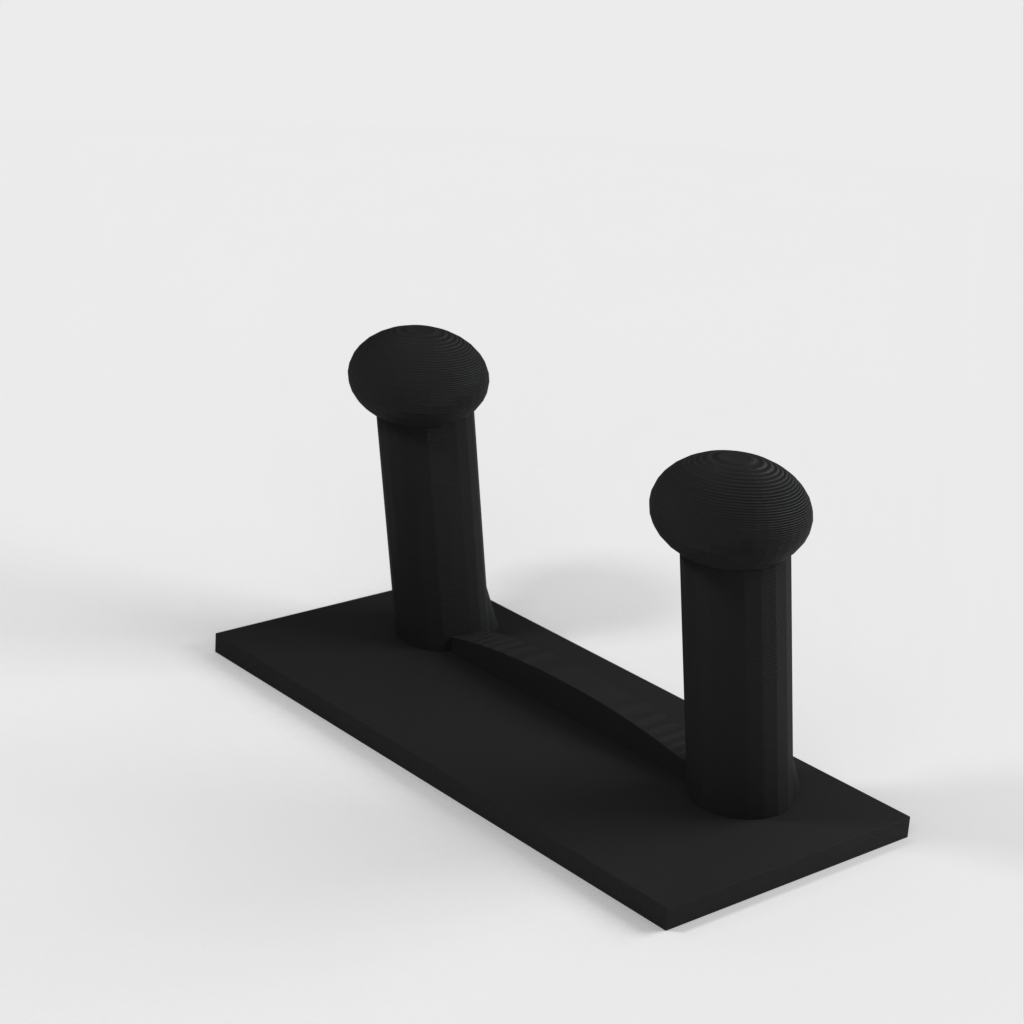 Et skohylde til væggen. Skohylden kan monteres direkte på en væg eller dør ved hjælp af dobbeltsidet klæbebånd, hvilket gør den aftagelig. Den er lavet, så hængeren på klæbebåndene hænger lidt under skohylden, så de kan fjernes, hvis det er nødvendigt.