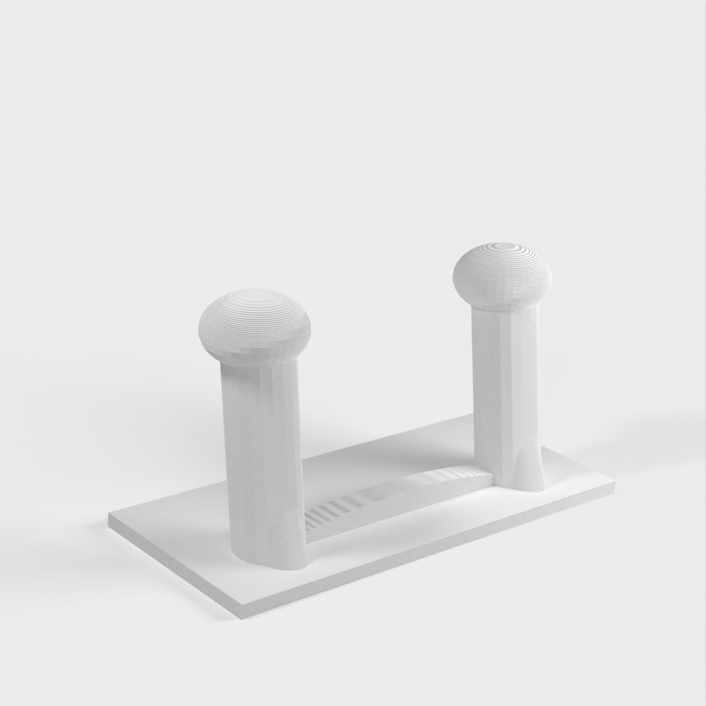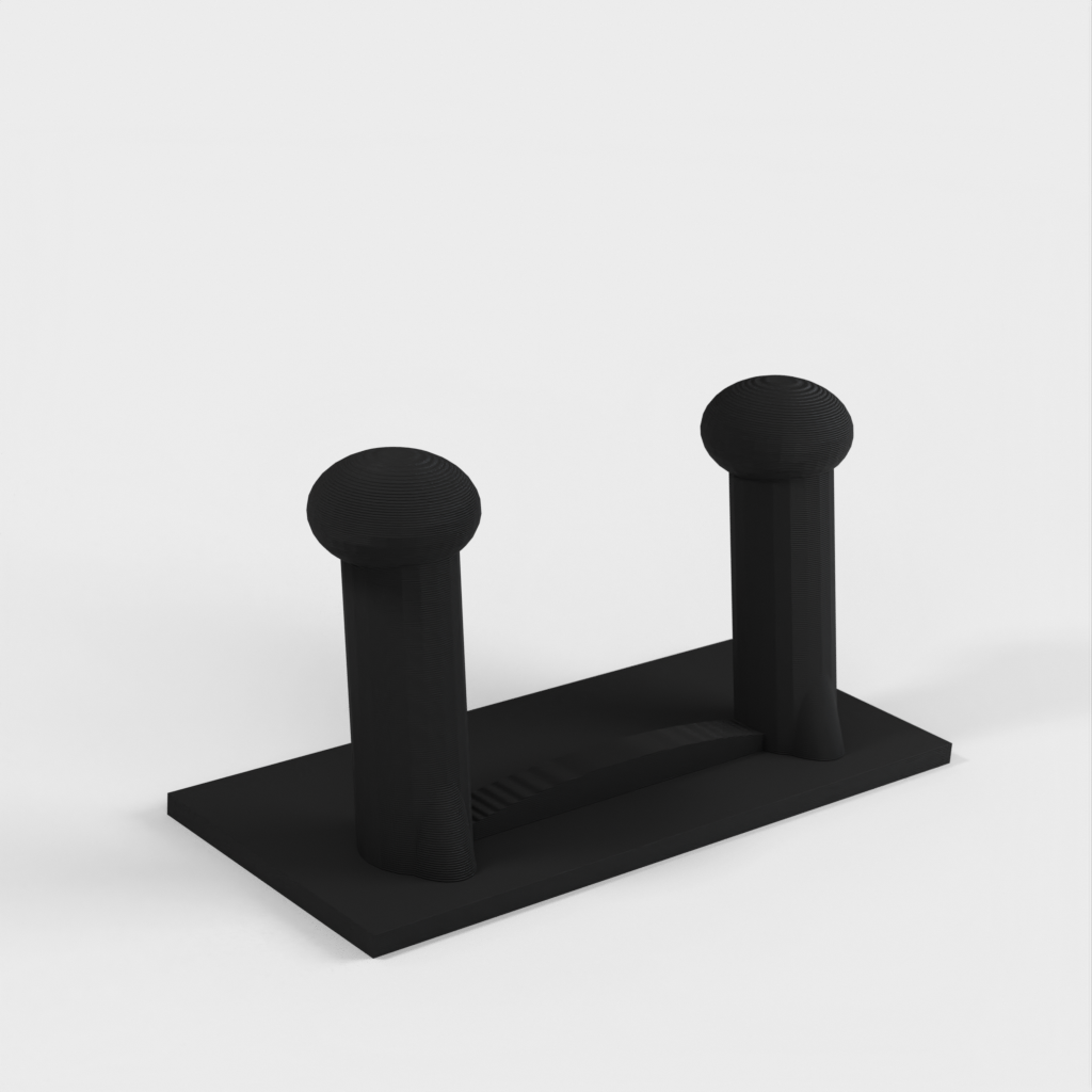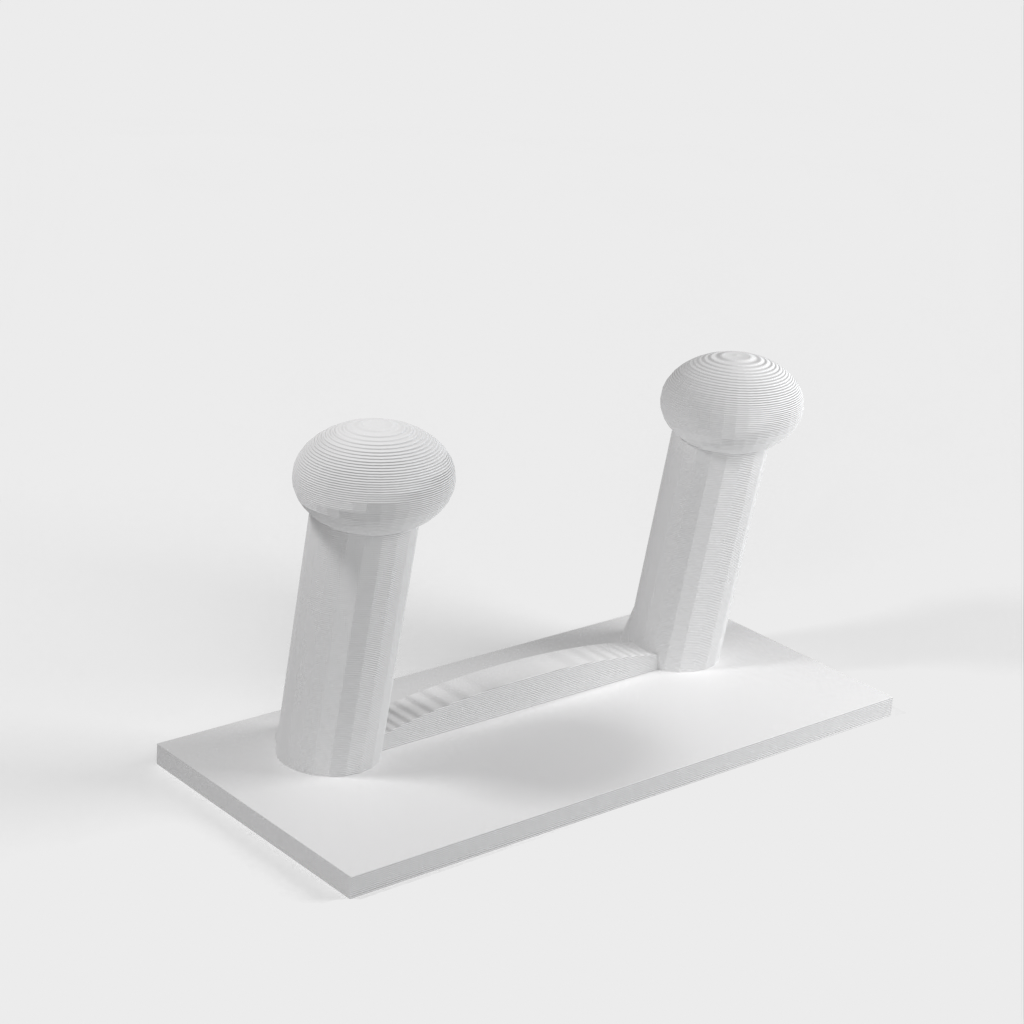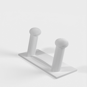 Et skohylde til væggen. Skohylden kan monteres direkte på en væg eller dør ved hjælp af dobbeltsidet klæbebånd, hvilket gør den aftagelig. Den er lavet, så hængeren på klæbebåndene hænger lidt under skohylden, så de kan fjernes, hvis det er nødvendigt.