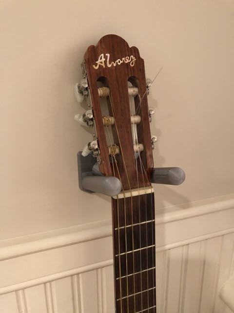 Denne hænger er designet til en klassisk guitar med en hals, der er 57 mm ved møtrikken. Ændringer er lette, da det er en stl-fil.