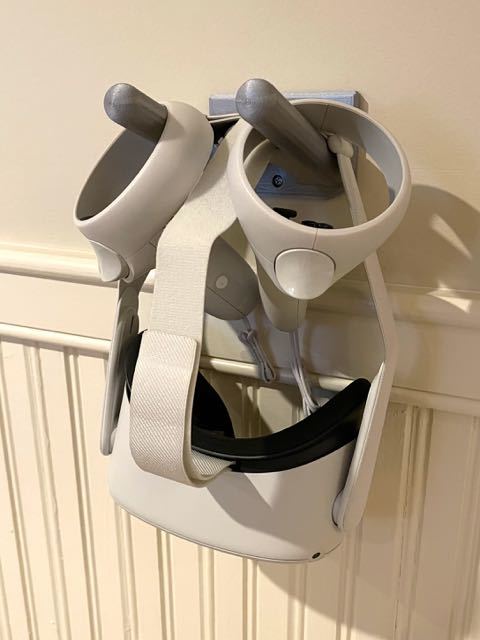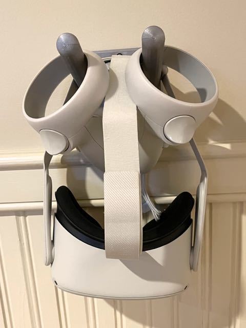 Den fungerer også perfekt som en Ocuclus Quest-2 hænger! Fastgør den tæt nok på et stik for at tillade genopladning.