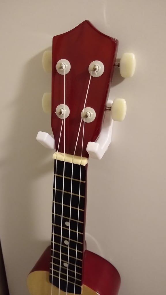Enkel ukulele vægmontering med hul til skrue. Dette produkt tillader dig at nemt og sikkert montere din ukulele på væggen, hvilket kan hjælpe med at organisere og skabe mere plads i dit rum.