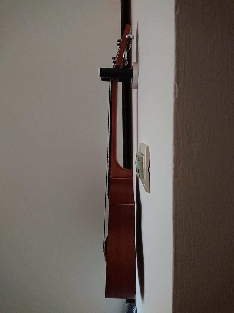 Dette er en simpel vægmonteret ukulele holder, der passer til næsten alle typer af ukuleler (koncert, sopran, tenor) med en gab på 4 cm. Den er ideel til at opbevare din ukulele på en sikker og praktisk måde.