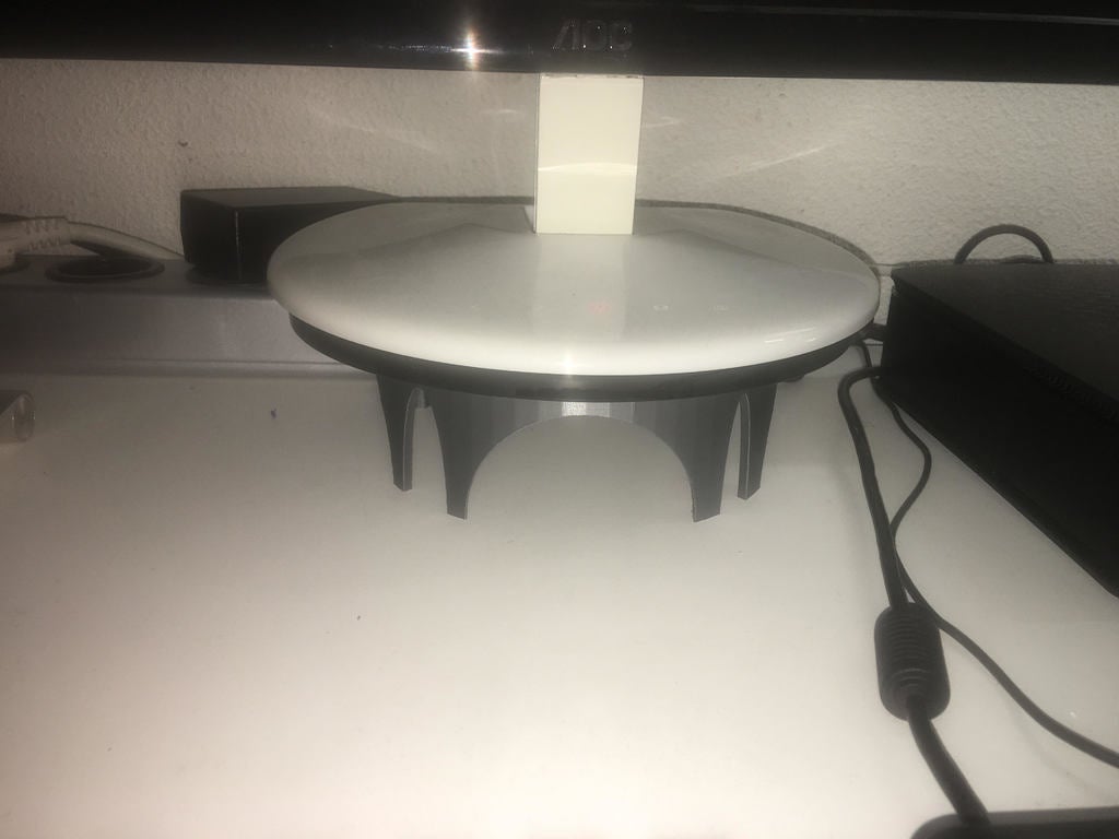 Simple monitor stand that fits most monitors with a round base. It provides a height of 7 cm and has a diameter of 20 cm, which can be adjusted as needed.