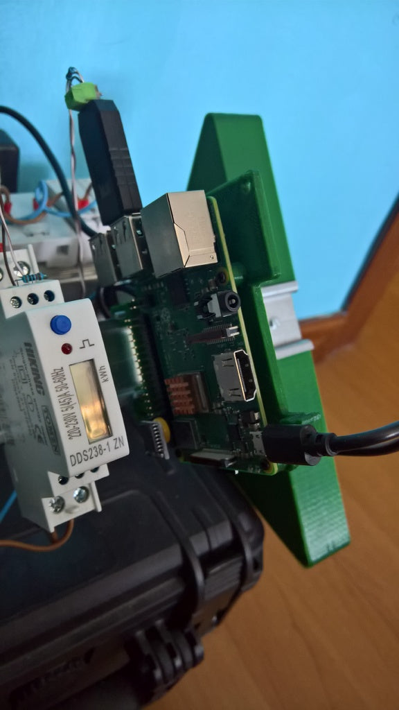 - To-delt DIN-skinnebeslag designet specifikt til Raspberry Pi Model B+ og nyere modeller.