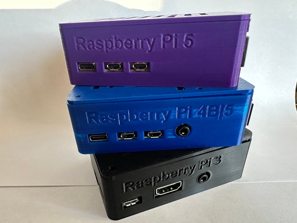 En multifunktionel kasse til Raspberry Pi modellerne 5, 4B og 3B. Denne kasse har en række tilvalg, herunder plads til en aktiv køler til Raspberry Pi 5. Der er også forskellige dækselmuligheder der passer til alle modeller, inklusive dæksler med og uden monteringspunkter for en 30mm eller 40mm blæser. Detaljer og yderligere tilvalg findes på https://www.thingiverse.com/thing:6242465 og https://www.thingiverse.com/thing:6260580.