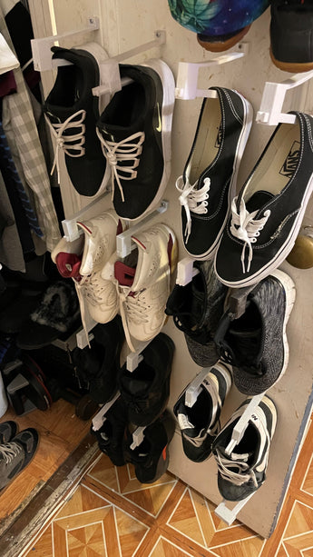 Denne vægmonterede hylde tilbyder en elegant og pladsbesparende løsning til opbevaring af dine yndlingssko og sneakers. Den er designet til at holde dit fodtøj organiseret og let tilgængeligt, uanset om det er i entréen, soveværelset eller walk-in-garderoben. Ved at udnytte vægpladsen frigøres gulvplads, hvilket bidrager til et mere ryddeligt og minimalistisk udtryk i ethvert rum. Hylden giver en stilfuld måde at fremvise din skosamling på, samtidig med at den sikrer, at dine sko holdes pæne og velordnede. Et funktionelt design, der passer ind i moderne indretninger og hjælper med at skabe overblik over dit fodtøj.
