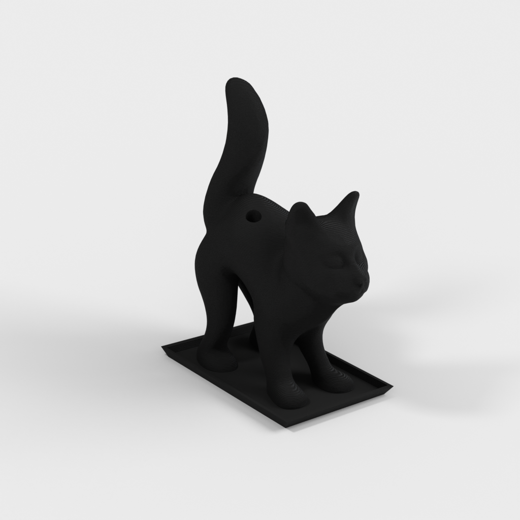Denne katteformede holder er designet til at rumme både røgelses- og parfumestænger med en diameter på op til 7,5 mm. Den fungerer som en praktisk løsning til at holde dine duftpinde sikkert på plads, mens de spreder en behagelig aroma i rummet.