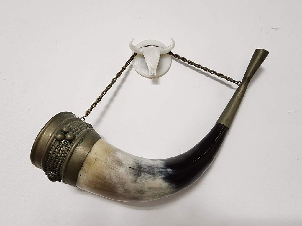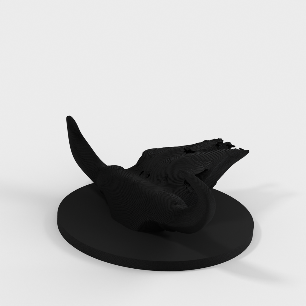 Denne unikke genstand kombinerer funktionalitet med et markant design inspireret af et tyrekranie. Den kan monteres på væggen og fungere som en praktisk krog til ophæng af små genstande som nøgler, lette smykker eller lignende, hvilket gør den ideel til entréen eller soveværelset. Alternativt kan den stå frit på en hylde, et skrivebord eller en vindueskarm og dermed tilføje et karakteristisk stykke pynt til din indretning. Det robuste udtryk skaber en interessant kontrast og kan komplementere forskellige indretningsstile, fra det moderne til det mere rustikke.