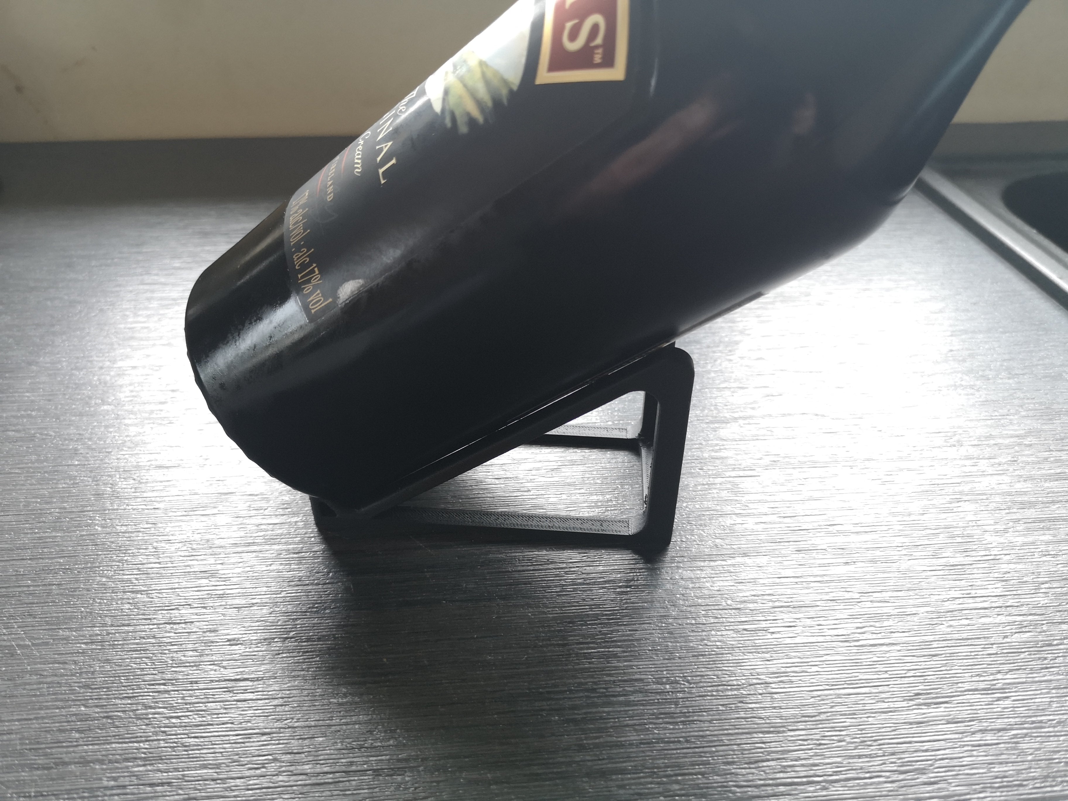 Dette display stativ er designet til at præsentere dine flasker på en unik og stilfuld måde. Flasken placeres i en 35° vinkel, hvilket fremhæver indholdet uden at stativet tager fokus. Designet er bevidst minimalistisk og diskret for at lade flasken være det primære fokus.
