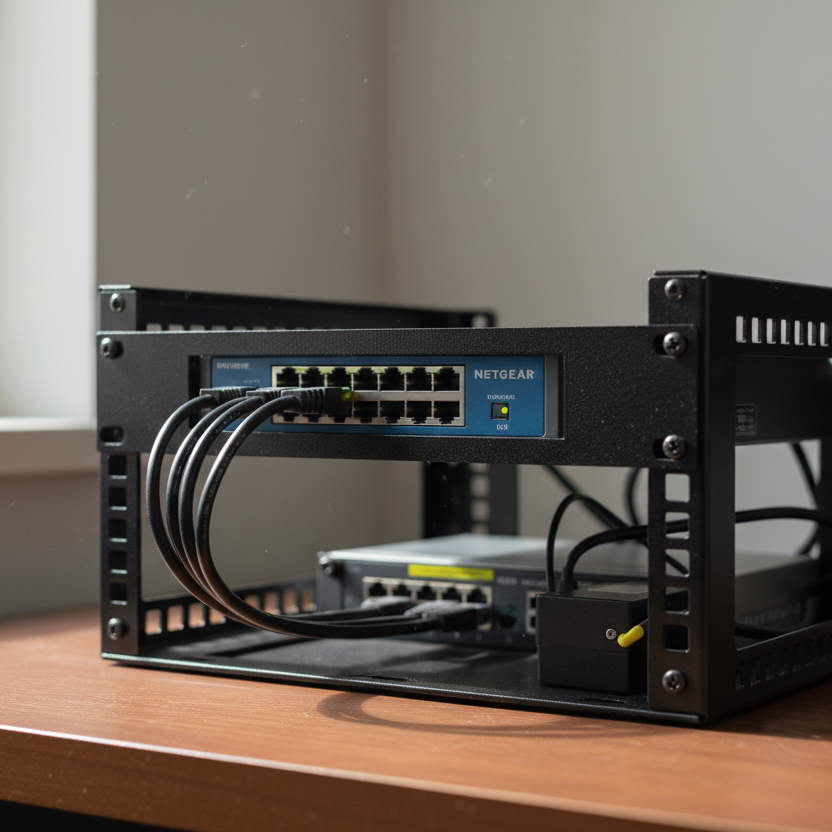 The rackmount for Netgear GS308 is an ideal solution for mounting your Netgear switch in a 10-inch network cabinet. This rackmount is designed to ensure easy installation and stable placement of the switch, which is essential for maintaining a well-organized server room. Functional and robust, it allows you to optimize space utilization in your server rack while protecting your equipment from damage. With a focus on usability and efficiency, this rackmount is an important choice for any professional network.