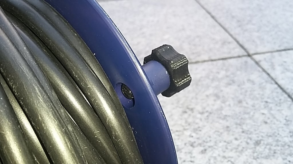 Et praktisk håndtag til en kabeltromle fra ALDI. Dette håndtag er designet til at gøre det lettere at håndtere og rulle din kabeltromle, hvilket giver dig en mere organiseret og effektiv arbejdsplads, have eller værksted.