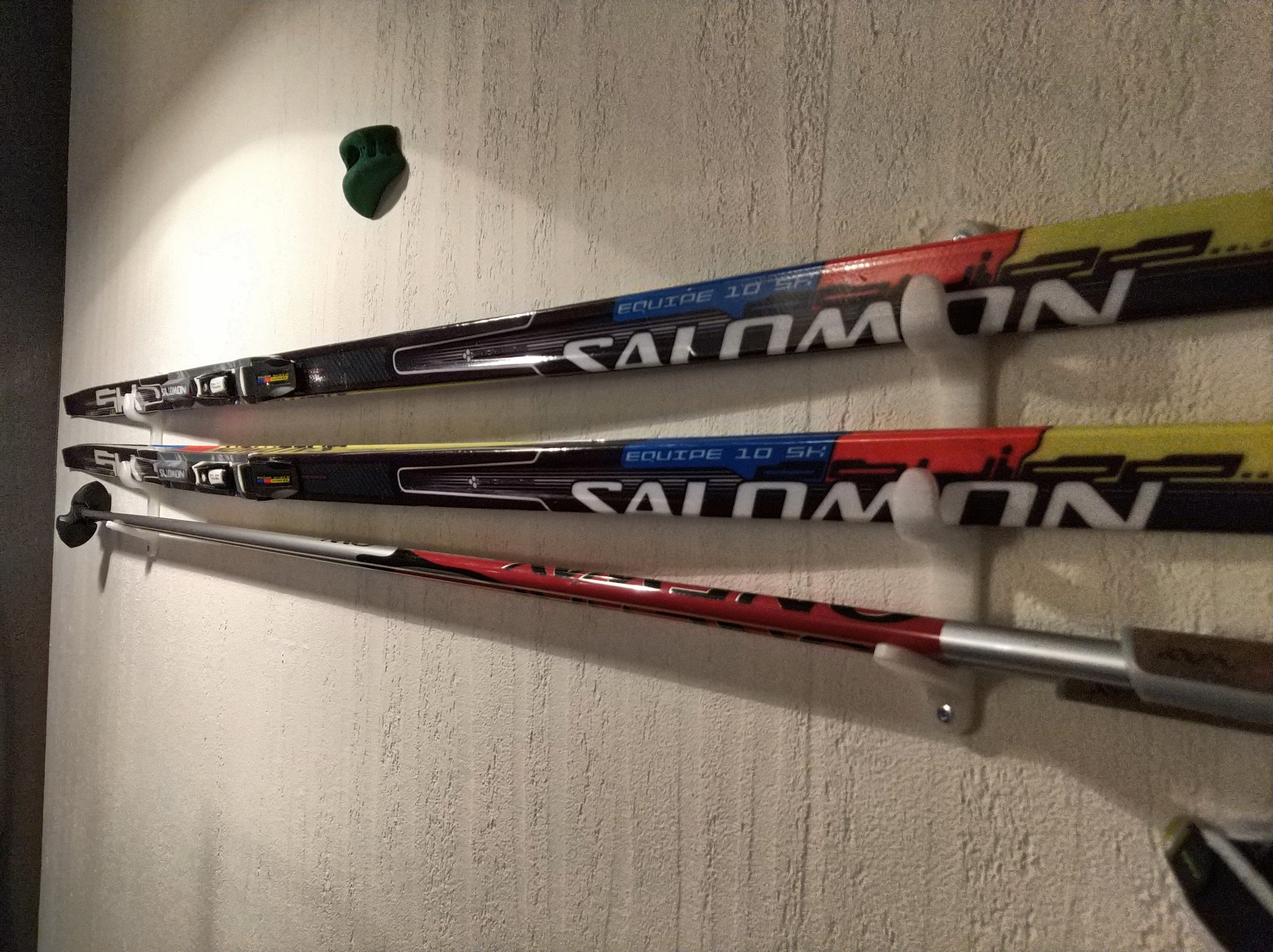 Dette er et vægbeslag til ski og stave. Den er omhyggeligt designet til at sikre, at dine ski og stave er sikkert opbevaret, når de ikke er i brug, hvilket hjælper med at skabe mere plads i dit lager eller garage. Holderen er nem at installere og giver dig hurtig og let adgang til dit udstyr.