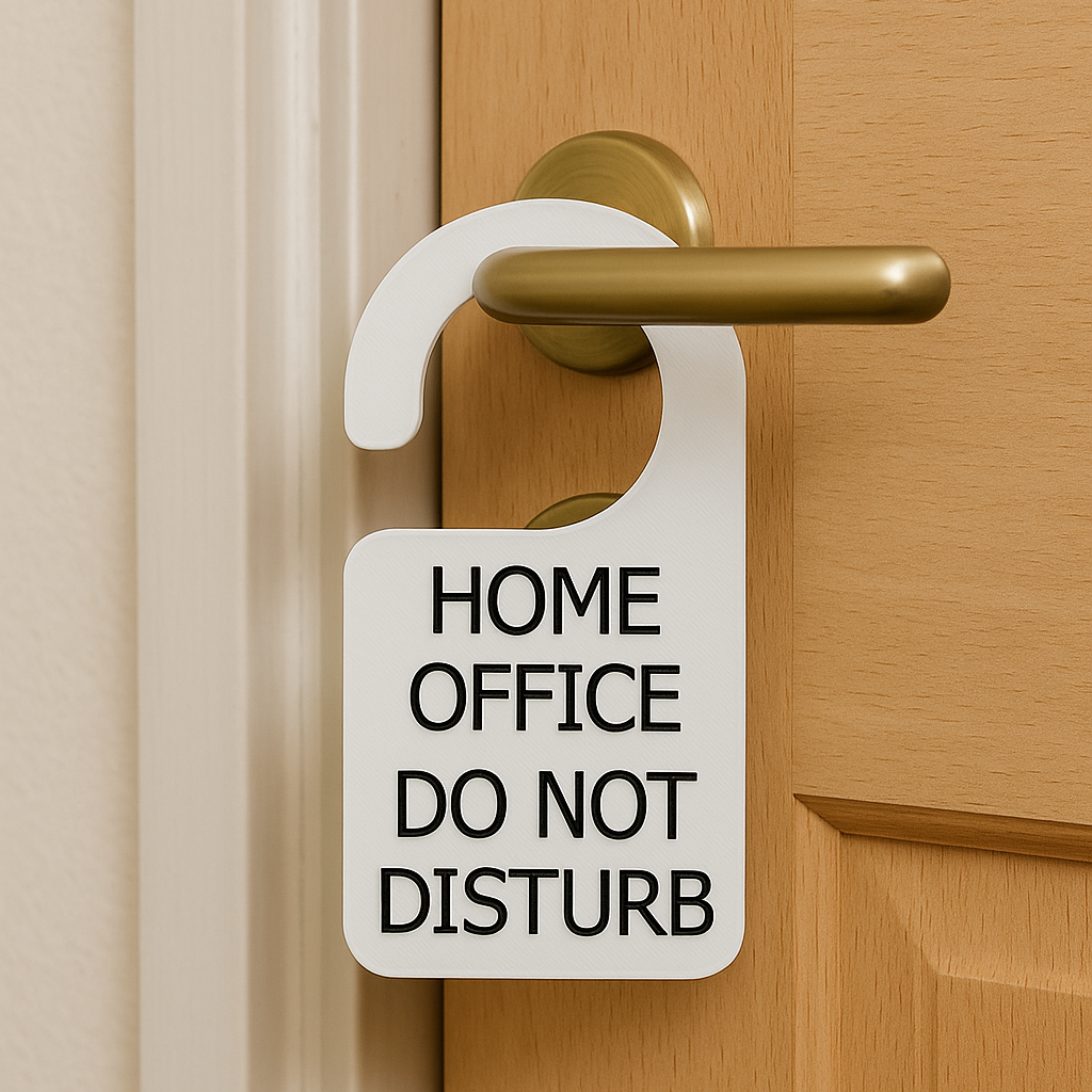 Hjemmekontor dørskilt med teksten "Do Not Disturb" er en ideel løsning, der holder dine børn og andre familiemedlemmer informeret, når du arbejder hjemmefra og ikke ønsker at blive forstyrret. Dørskiltet passer perfekt på almindelige europæiske dørhåndtag.
